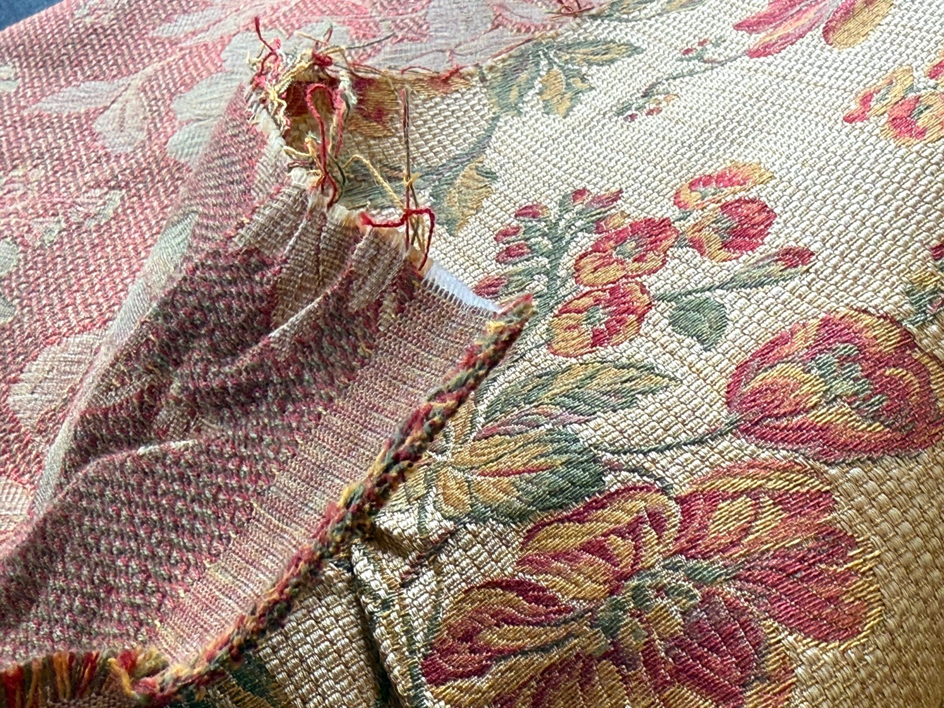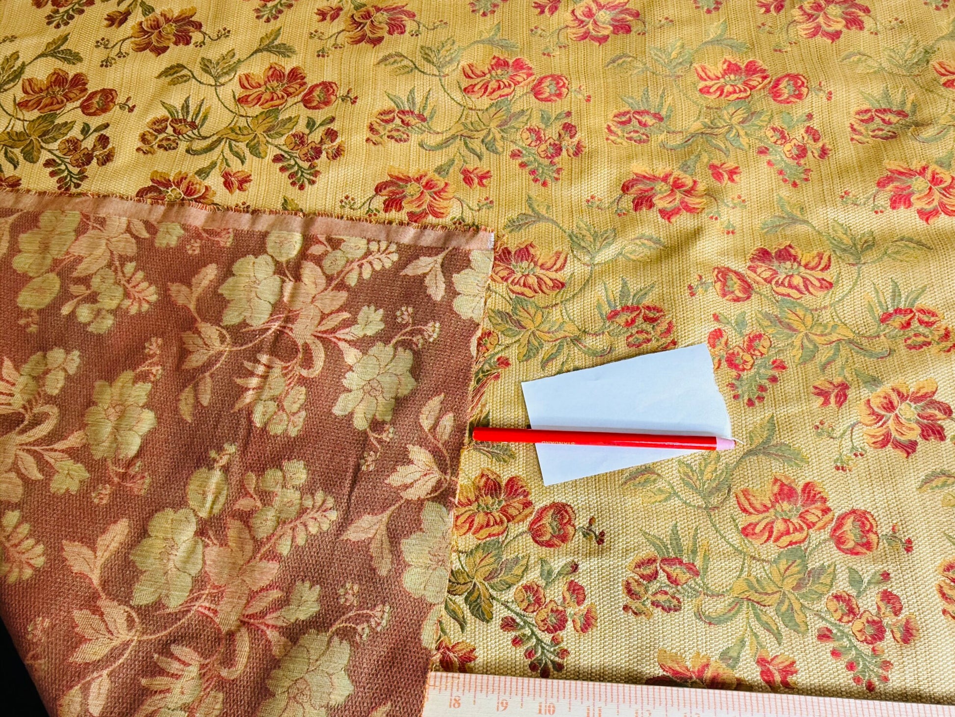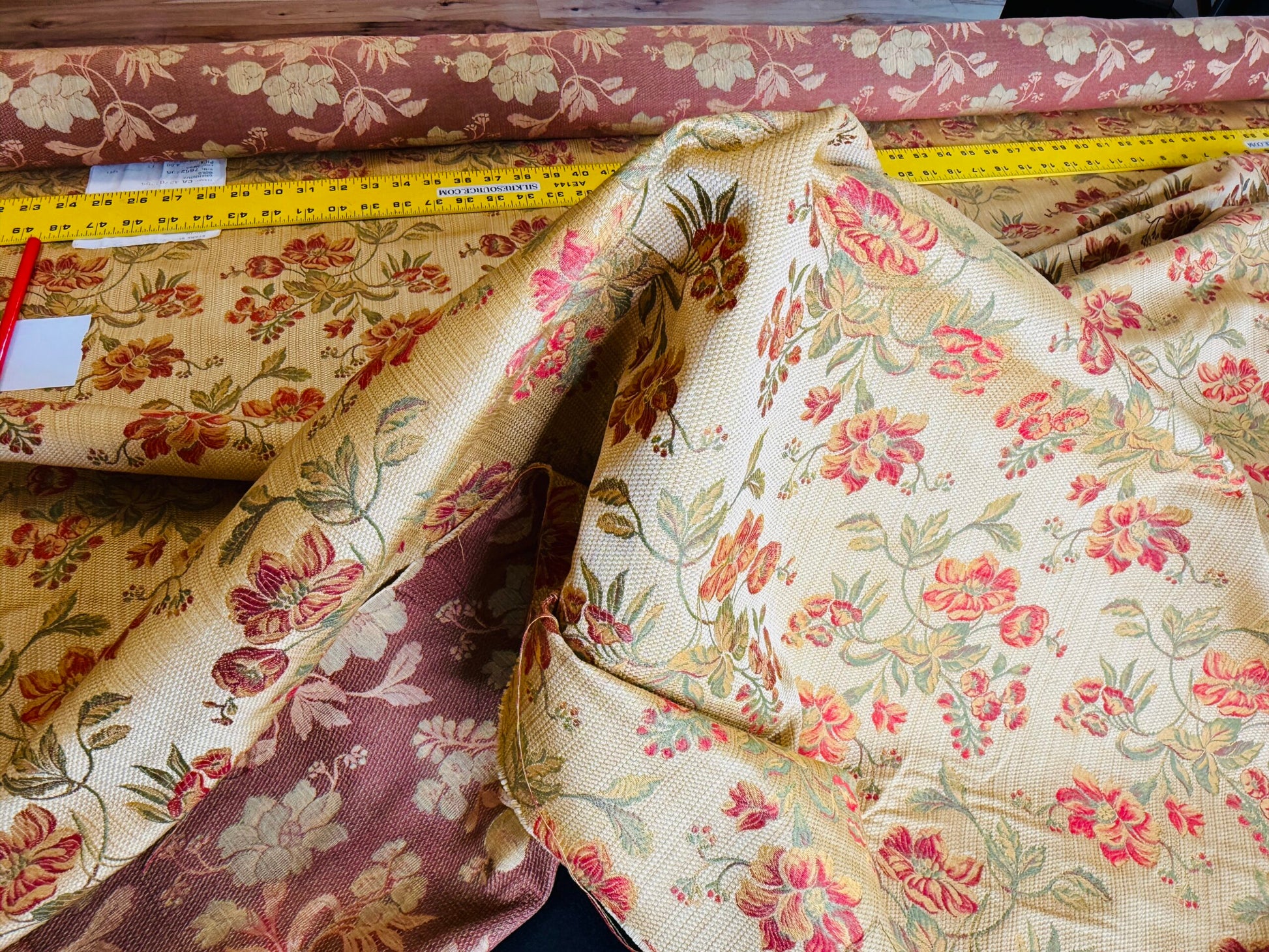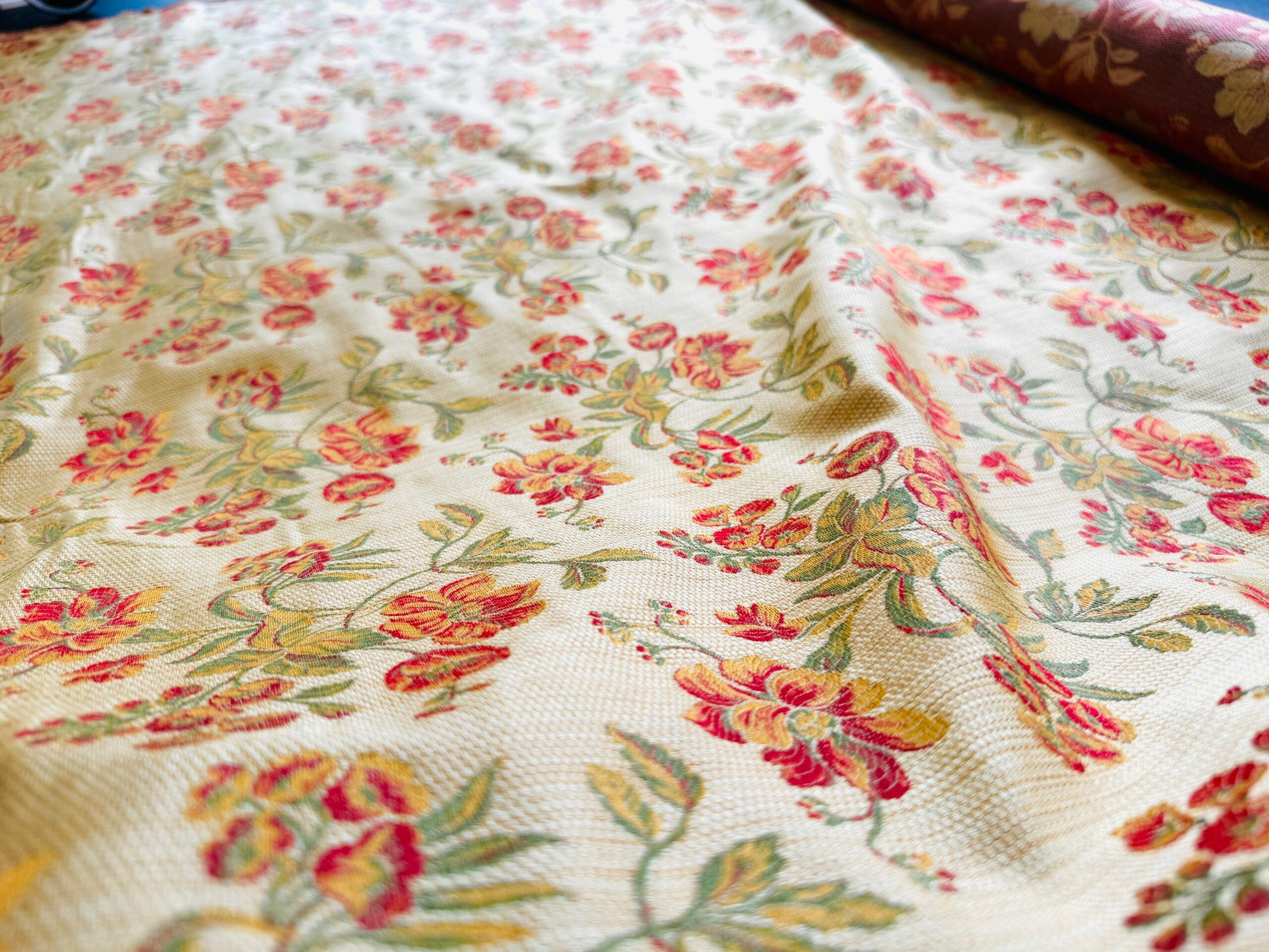 Scalamandre Charroux Gold Peony Field Red Floral Lampas Red France MSRP USD 284/Y