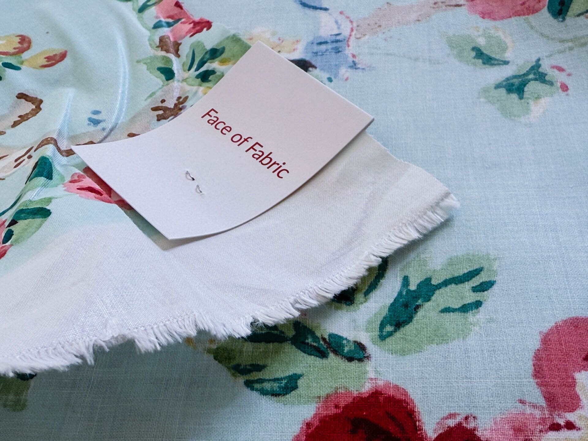 Chatsworth is English Chintz in the most authentic way, created by Fonthill. Beautiful English garden painted in atmospheric water color. Fresh bouquet of rose and peony tied with blue ribbons.