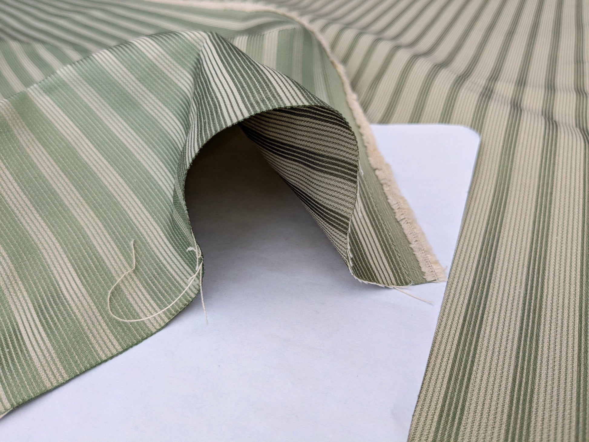Scalamandre Chopin Stripe Reseda Green Bay Grey Green Silk Cotton MSRP USD 240/Yard