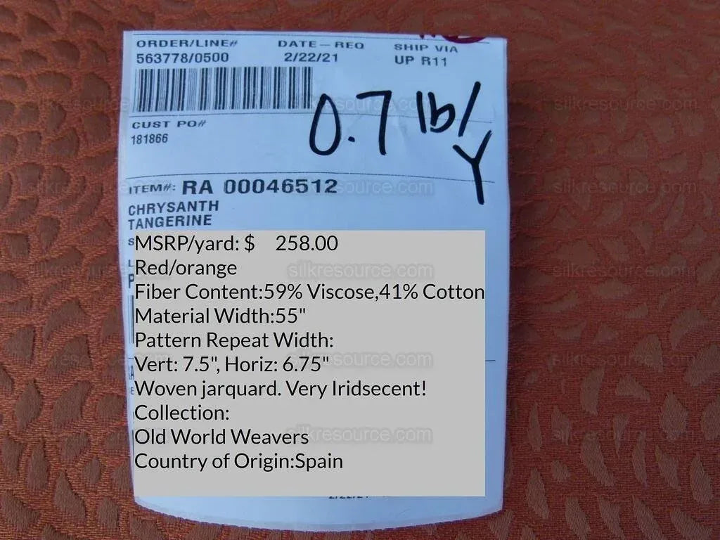 Scalamandre Chrysanth Chrysanthemum Tangerine Flowers Woven Glamour Texture Old World Weavers MSRP USD 258/Y