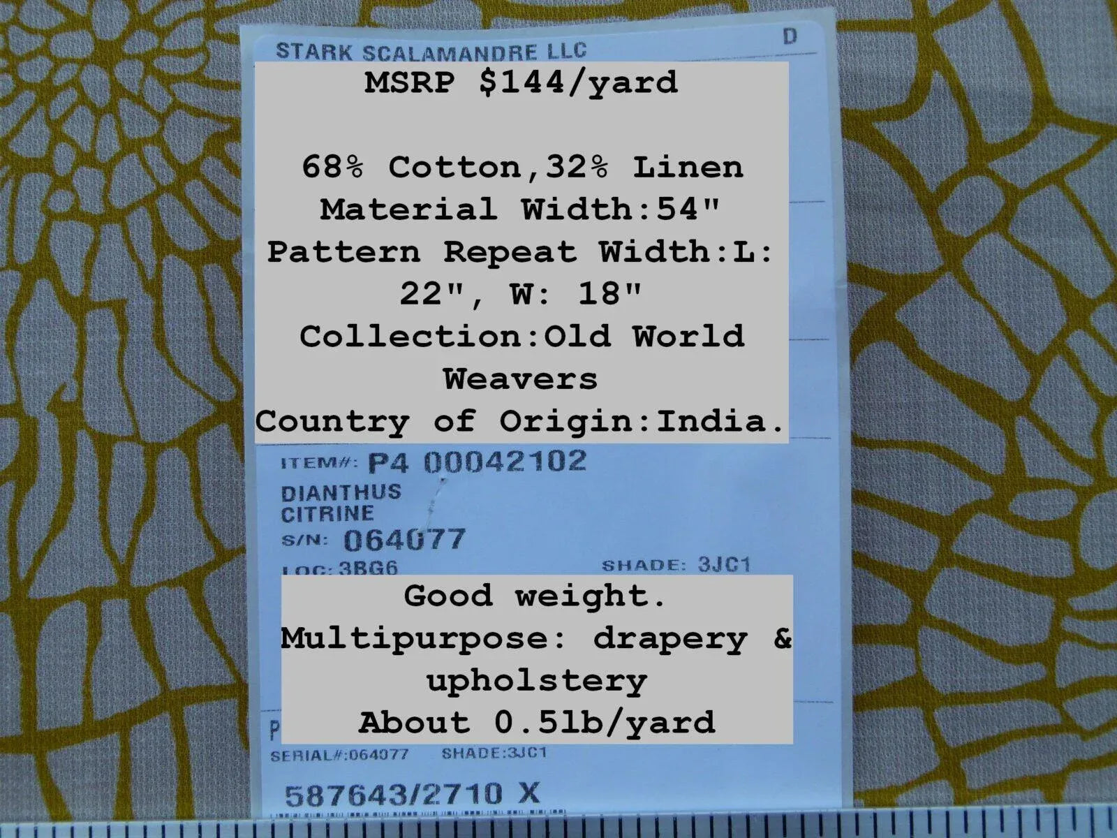 Fiber, repeat, width, weight, country of origin, retail price/yard: