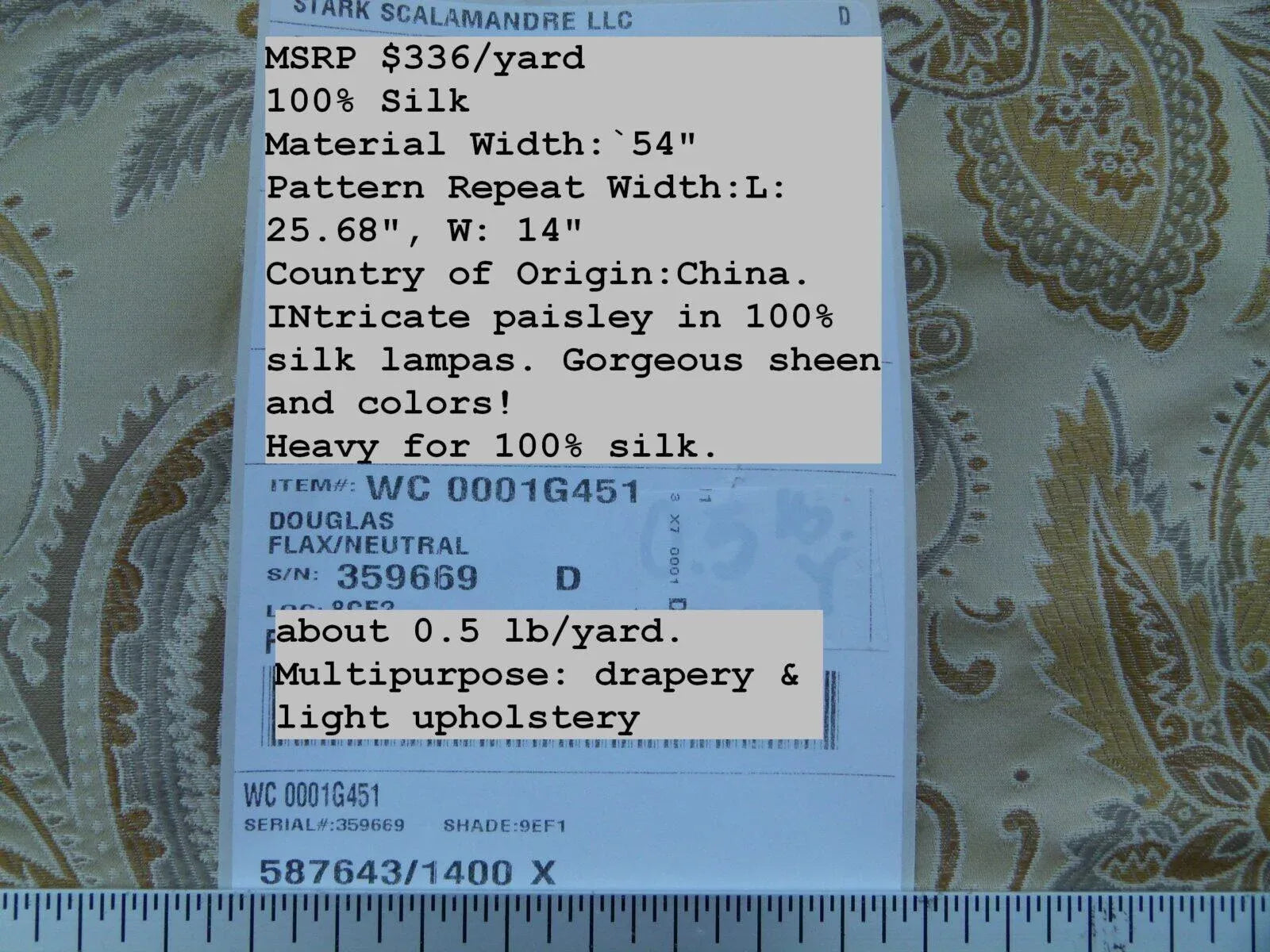 Scalamandre Fonthill Douglas Flax Neutral 100% Silk Paisley Old World Weavers MSRP USD 336/Y