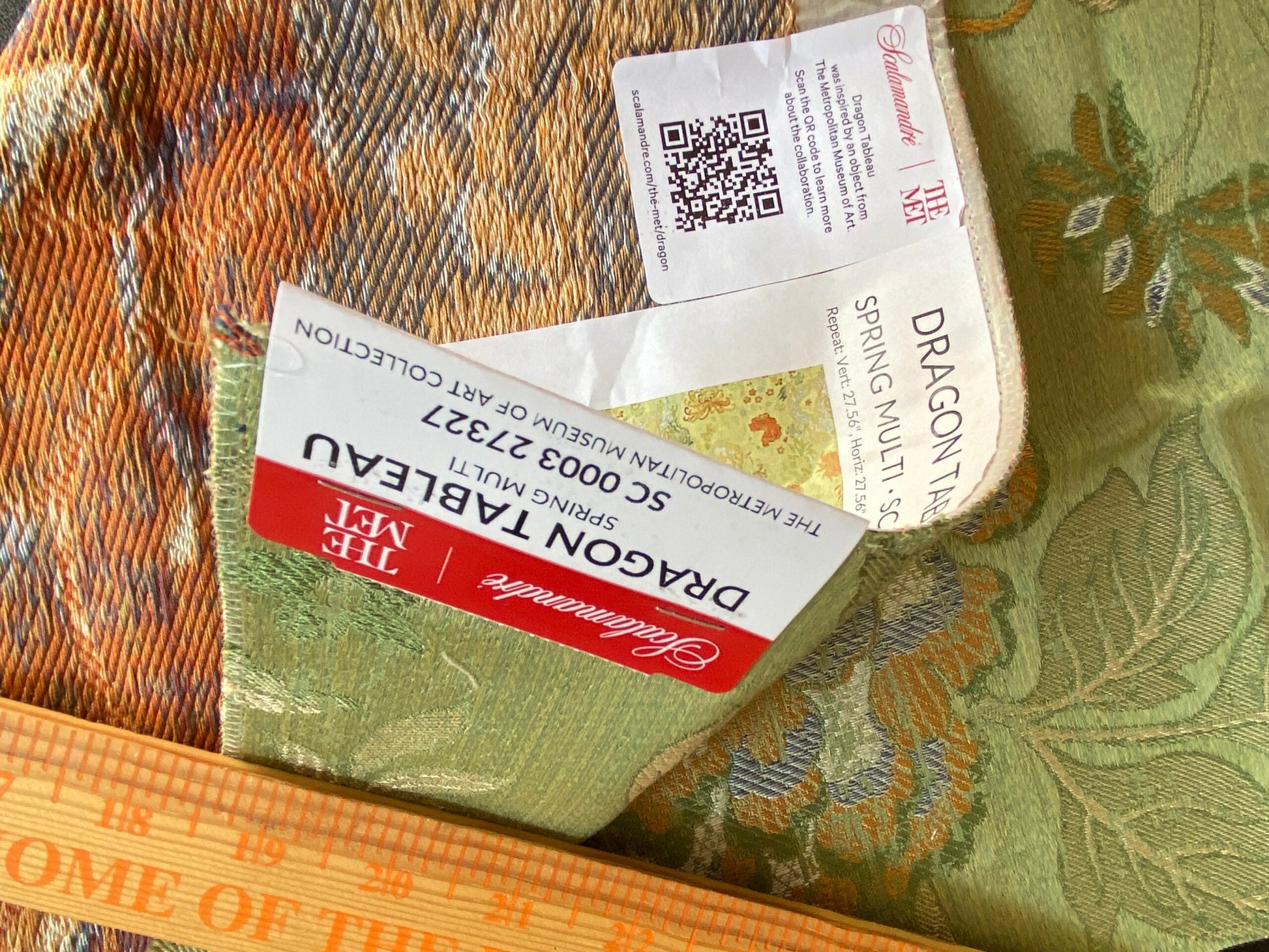 by yard Scalamandre Dragon Tablea Spring Multi Lampas Chinoserie Green MSRP USD 716/y