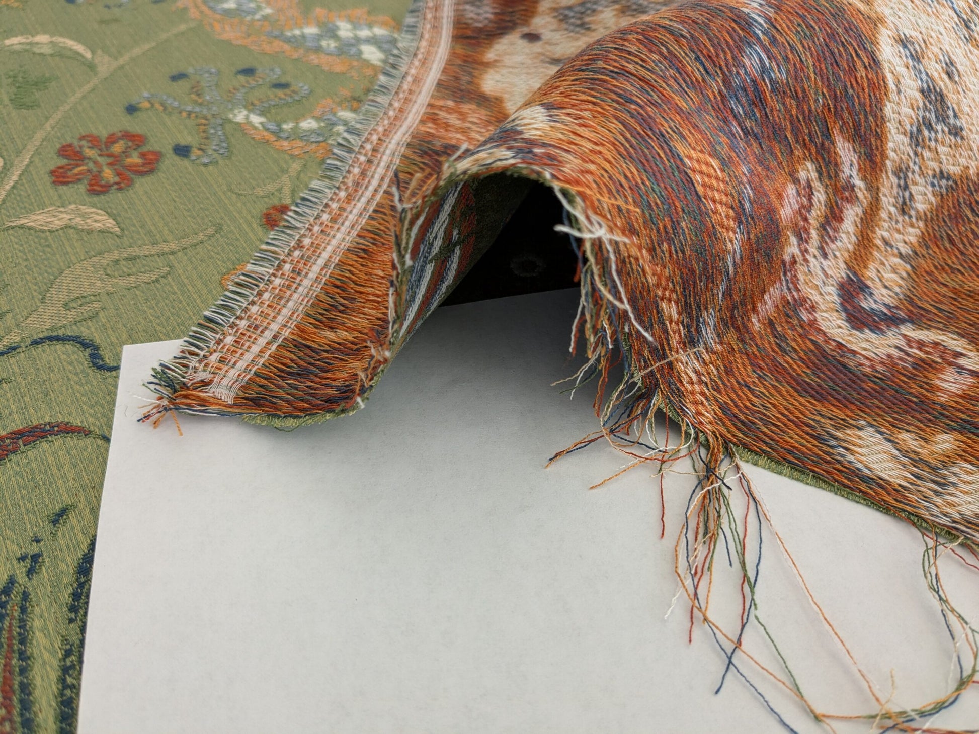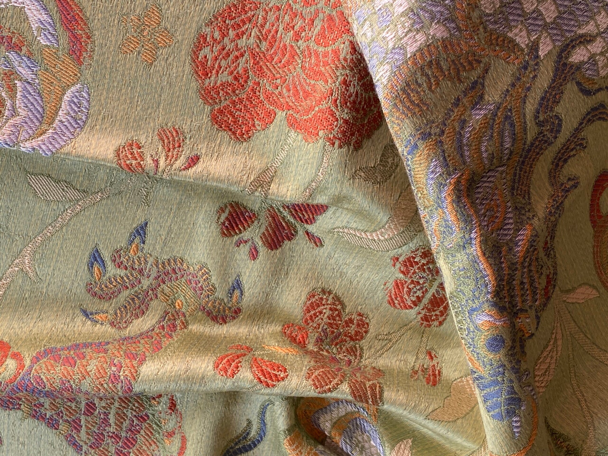 Our Dragon Tableau is a brocaded jacquard fabric that is suitable for curtains, light upholstery, and even walling.