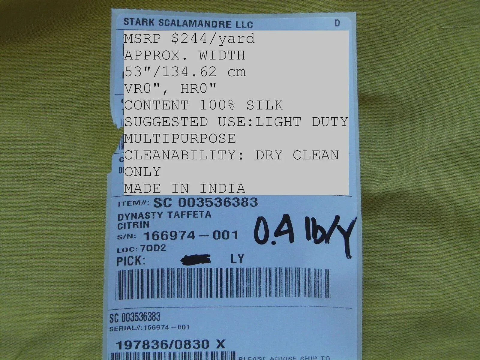 Scalamandre Dynasty Taffeta Citrin 100% Silk Heavy MSRP USD 322/y