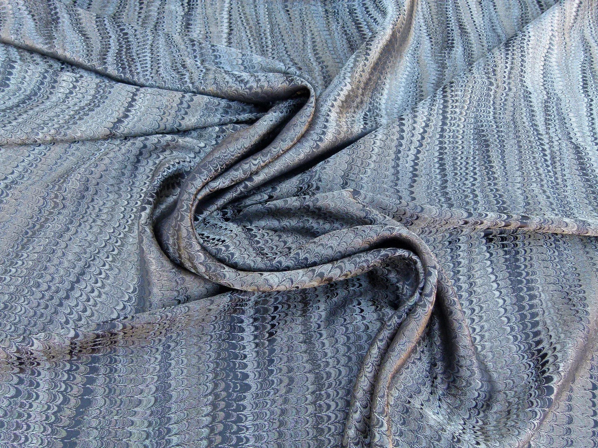 The art of marbling papers was first discovered by Europeans in Turkey, and came to be known as “Turkish Marbling”. Today, the art of marbling is known in Turkey as “Ebru”. Scalamandré’s glamorous interpretation of a classic feather-like marble pattern known as “Nonpareil” is woven in a lustrous blend of silk and viscose, for a nearly iridescent surface with an incredible drape. The colorations are rich and exotic, almost jewel-like in their blend of shimmering, saturated hues. Its glamorous look is a great accent for contemporary and classic rooms alike, as curtains, decorative accents, wall upholstery, and occasional accent chairs.