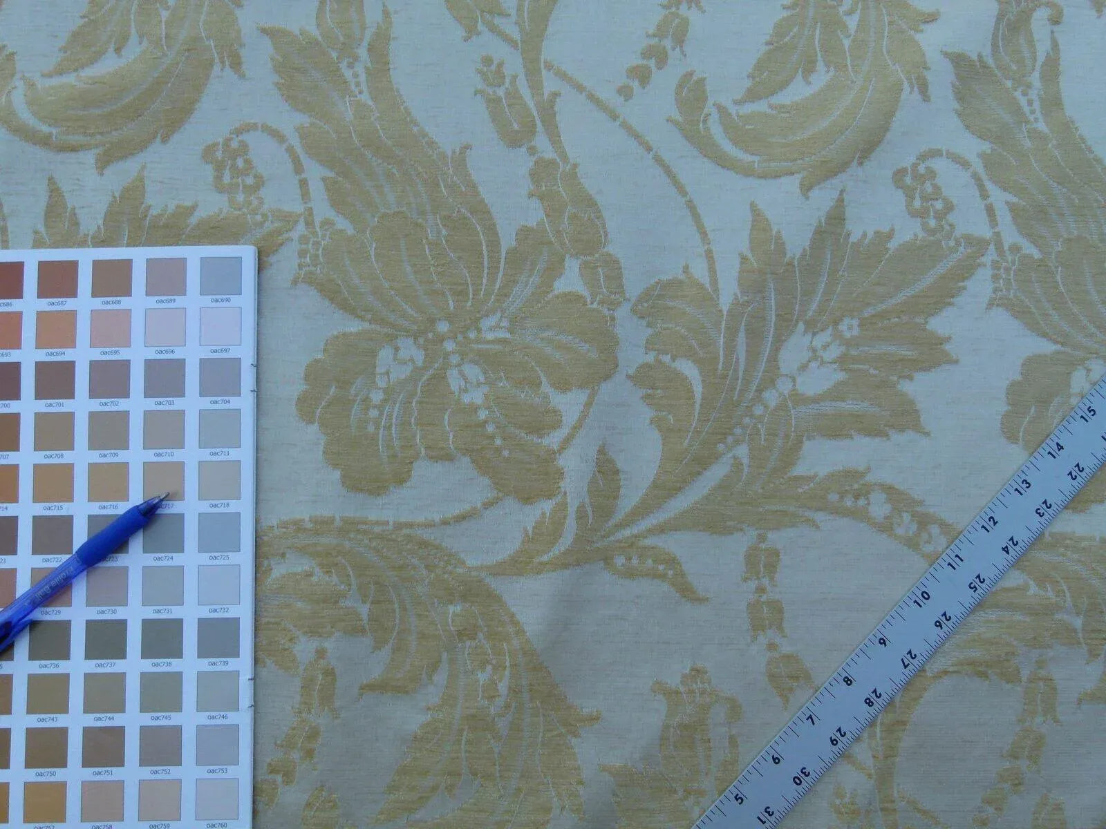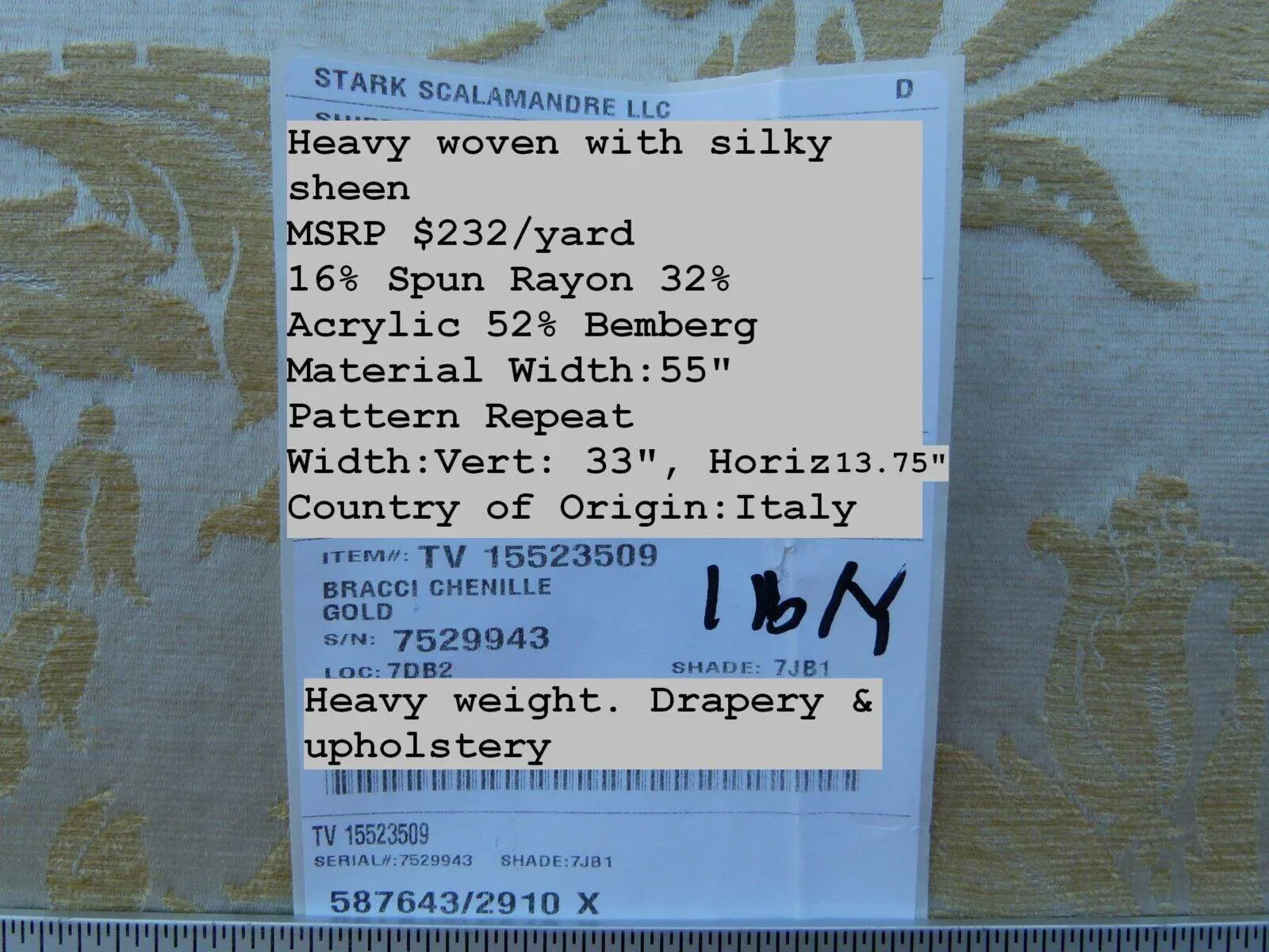 Scalamandre Elegant Bracci Chenille Gold Acanthus Feather Damask Old World Weavers MSRP USD 232/Y