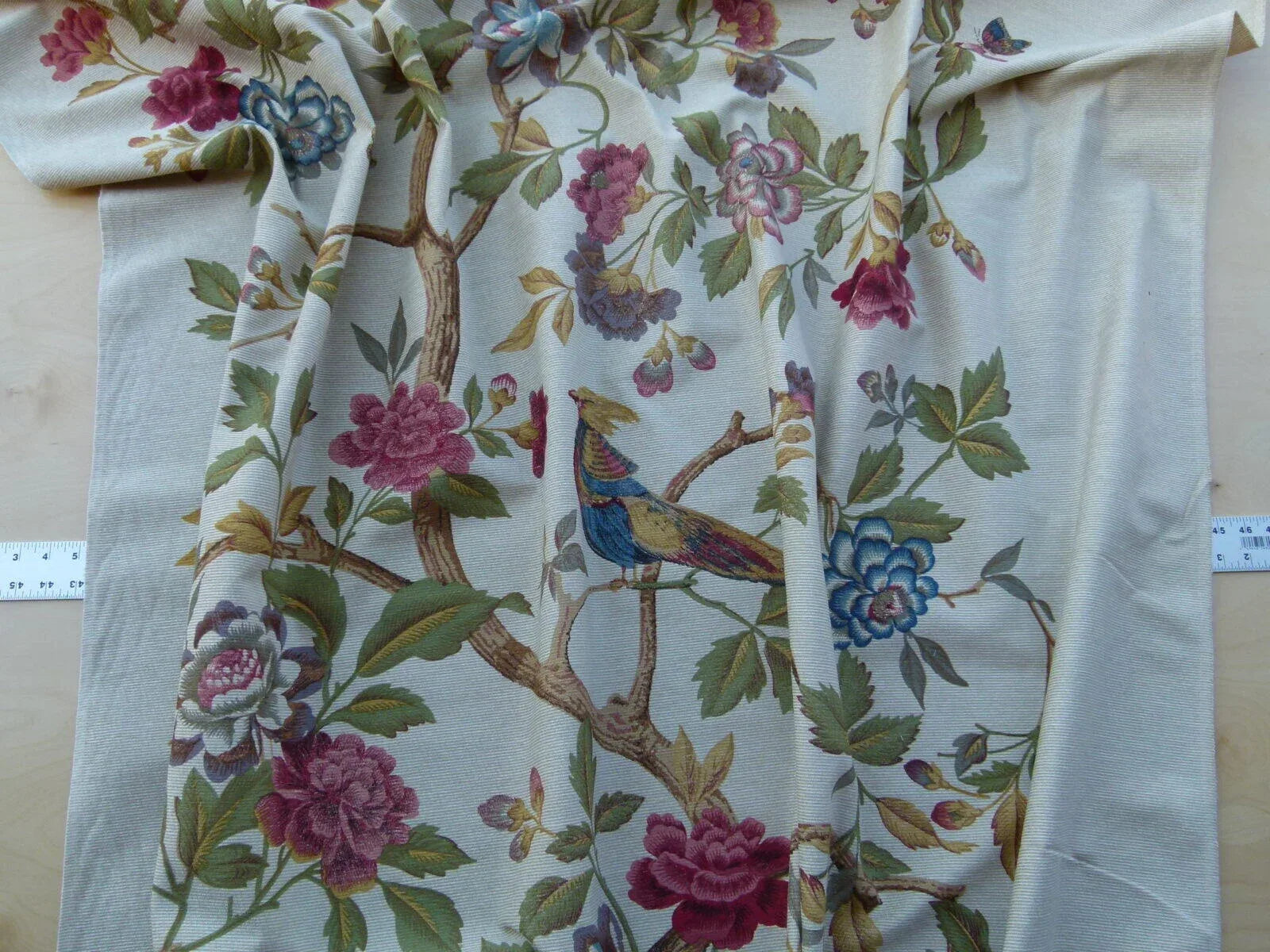 Scalamandre Faisan Putty Flower Tree Peony Bird Chinoiserie Chenille Stripe Print MSRP USD 400/yard
