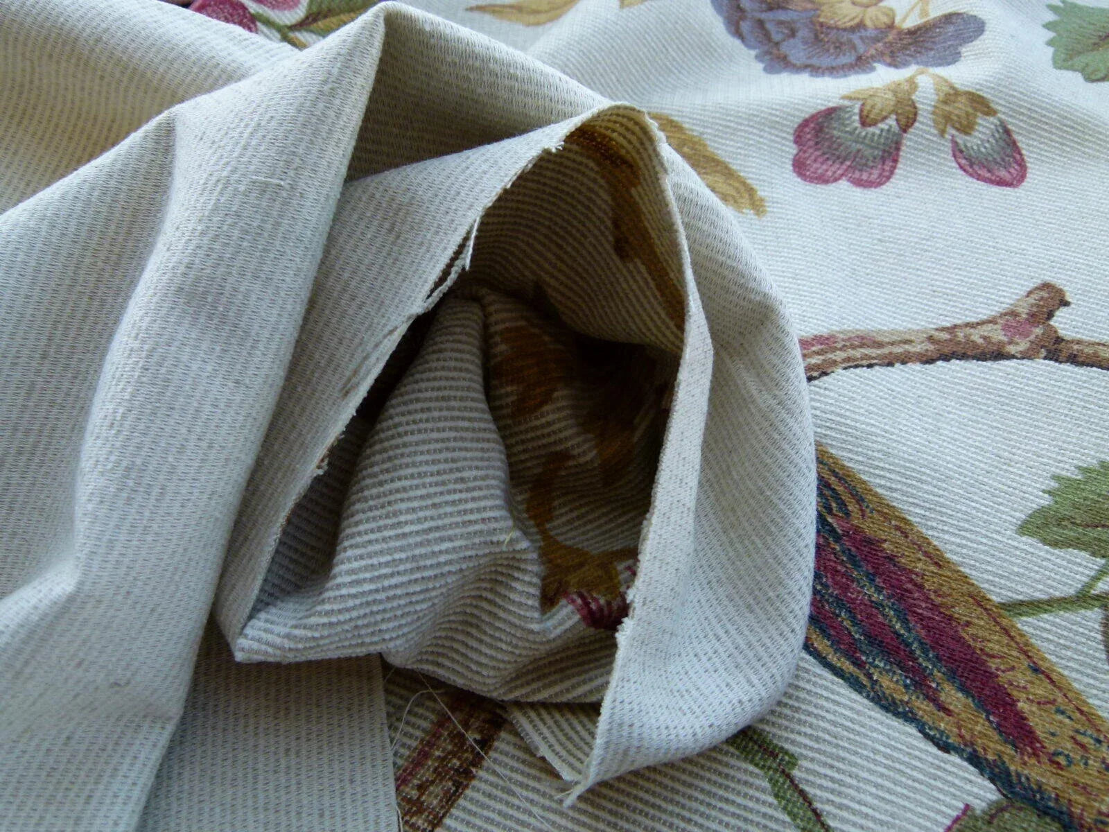 | Enchanting birds among tree peonies. Large blossom and heavenly colors. This chenille is 100% cotton which is quite unusual. Very heavy weight: about 1.3lb/yard.100% Cotton Material Width:47" Pattern Repeat Width:Vert: 38", Horiz: 47" Country of Origin:England. SKU: BR 99998067 |