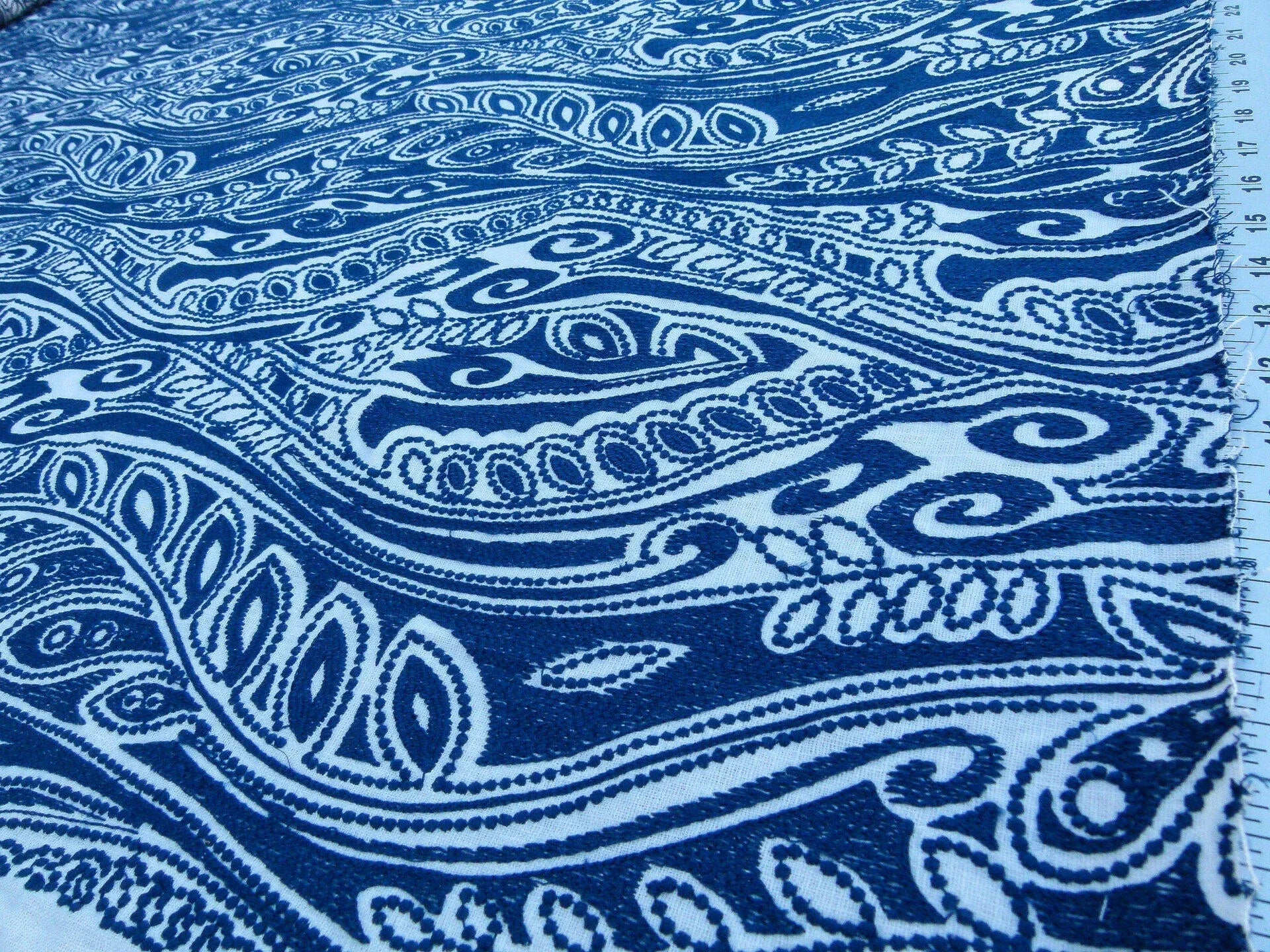 Scalamandre Fanfare Blue Paisley Design Embroidery..