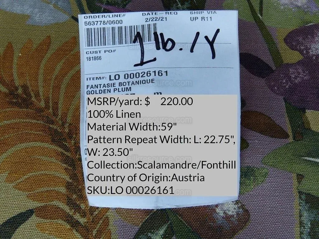 Scalamandre Fantasie Botanique Fonthill Golden Plum Purple Green Linen Foliage MSRP USD/220Yd