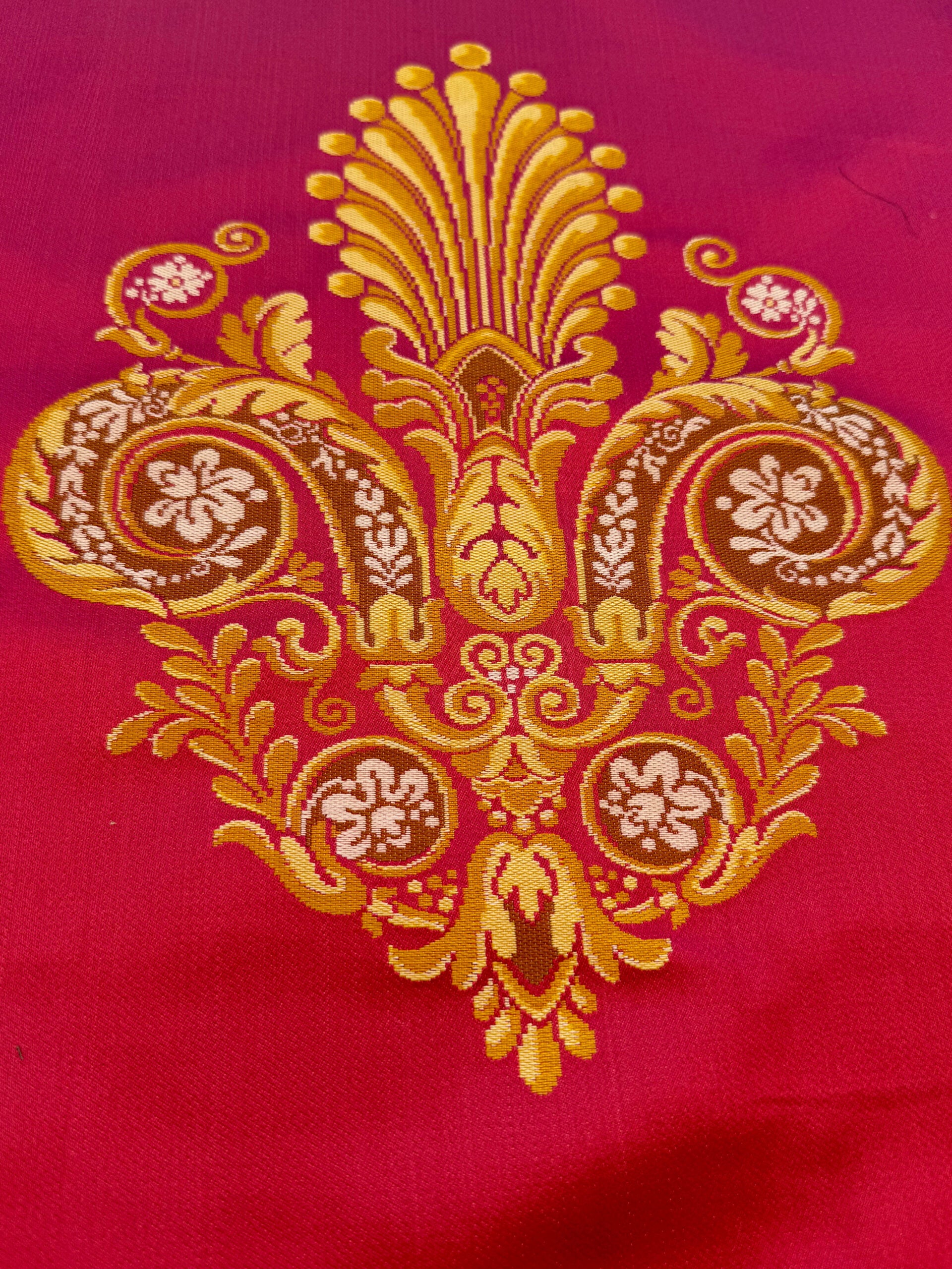 By 26"wide x51" Long Scalamandre Fauteuil Bessieres Seat & Back Rouge Red Gold French Antique Design Medallion MSRP USD 612/y