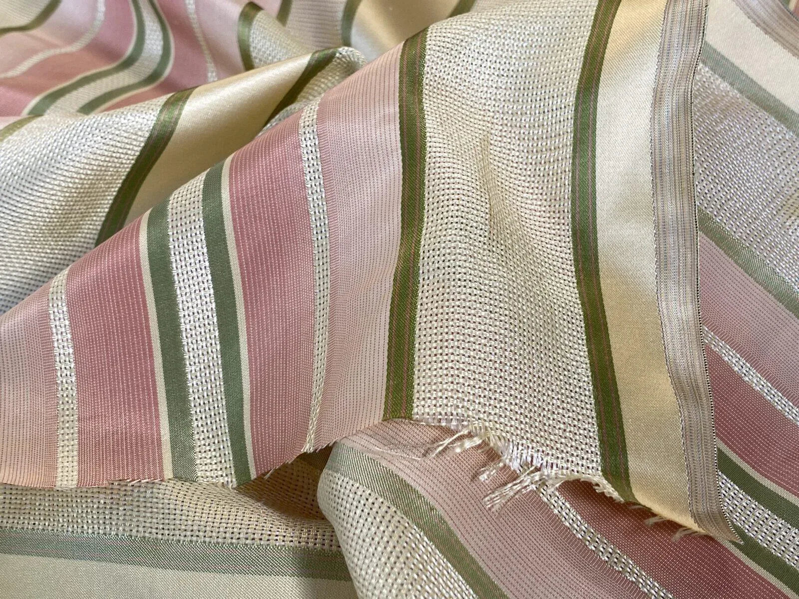 Scalamandre Florian Stripe Pastel Pink Green Silk Satin Semi Sheer MSRP USD 232/yard