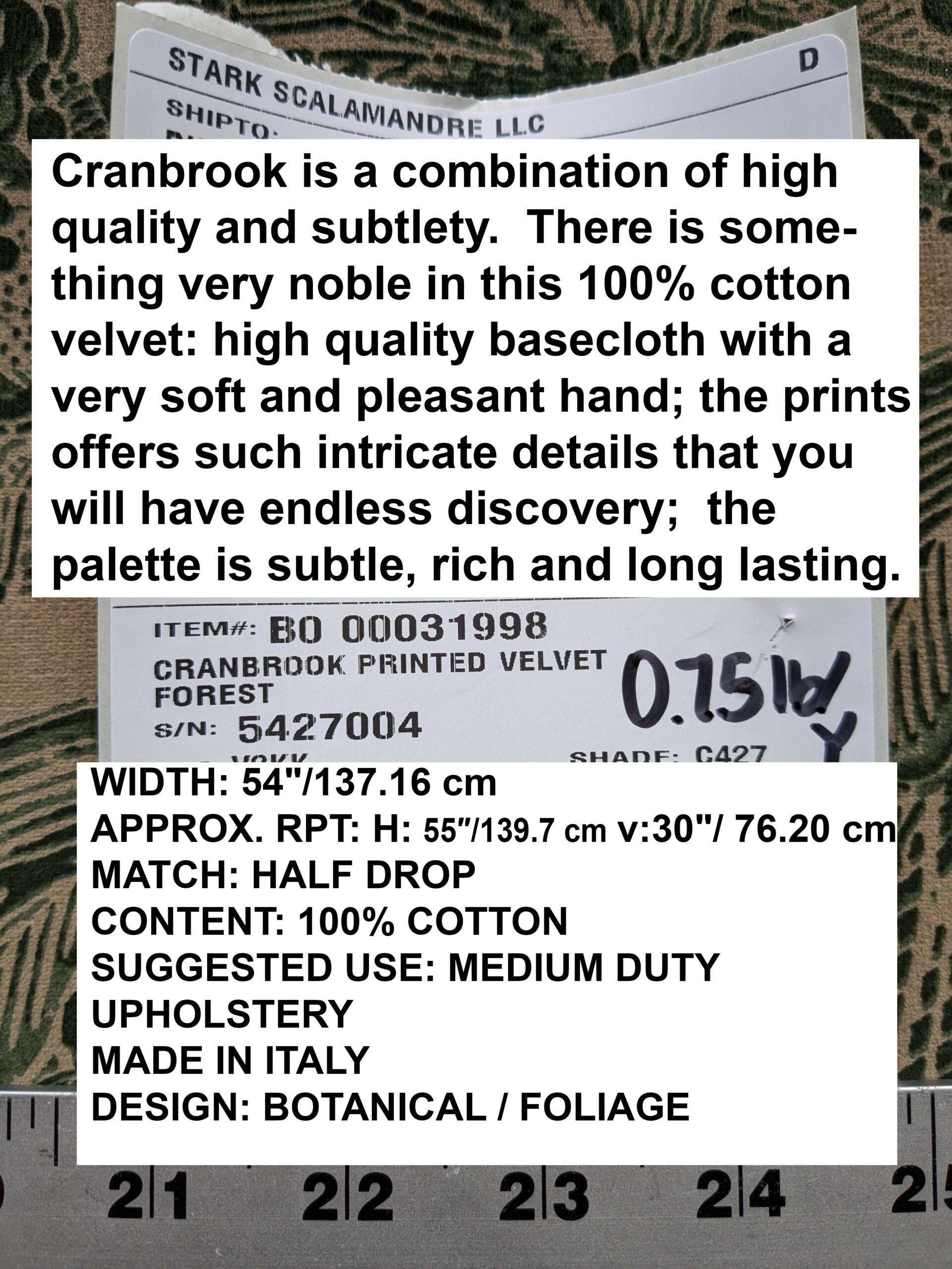 Scalamandre Fonthill Cranbrook Printed Velvet Forest Rich Emerald Green Printed Renaissance Floral Jacobean MSRP USD368/Y