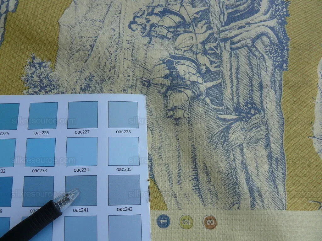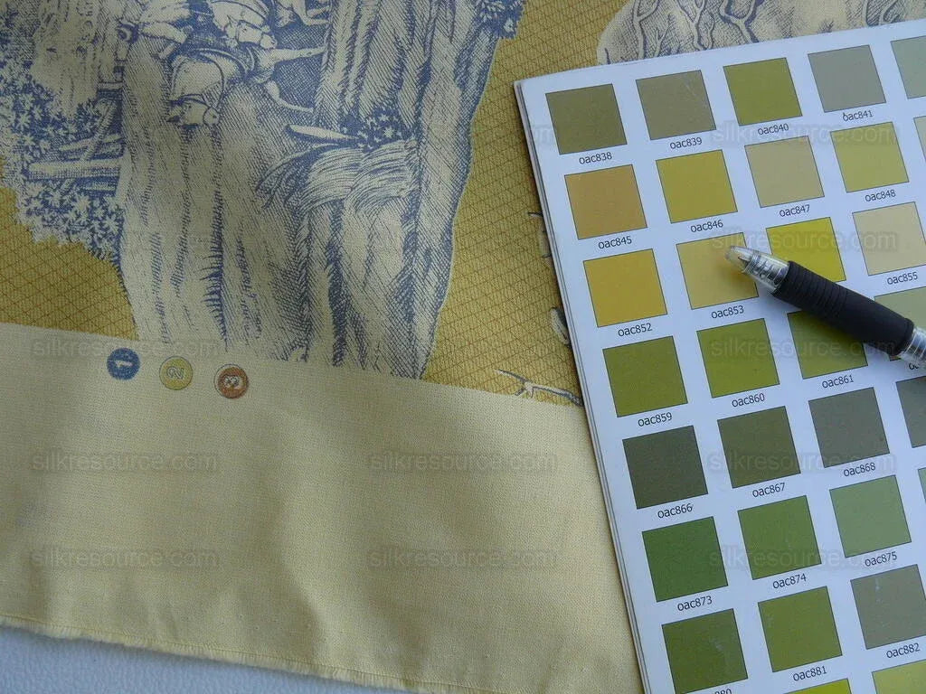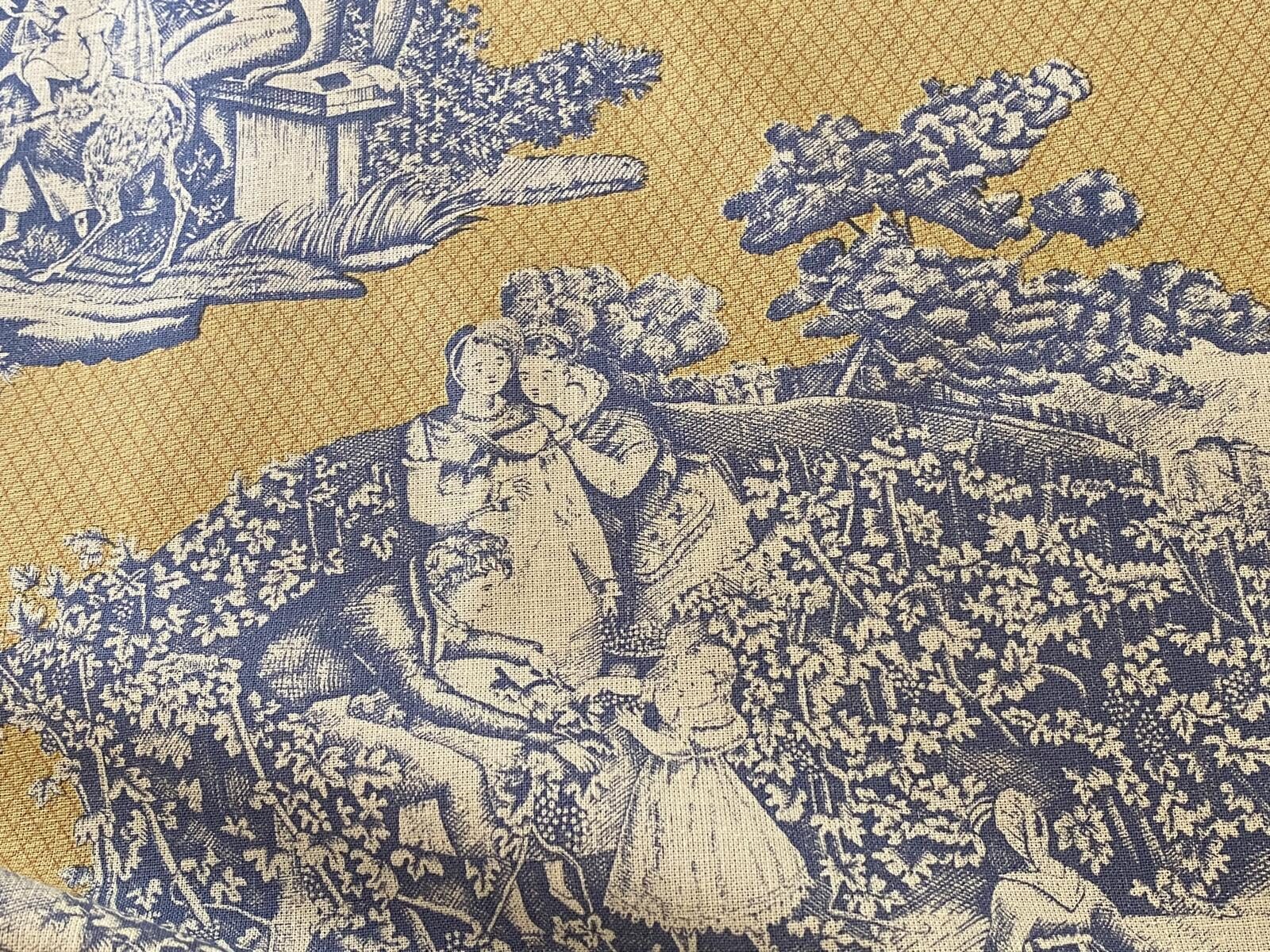 (Yards in photo was the ORIGINAL yards) Designer: Scalamandre/Old World Weavers Unique toile faithfully based on historical design. "Four Seasons", printed in England on best quality base cotton, eludes the serenity of a slower time. Life in harmony with nature: Spring, Summer, Fall and Winter. Picking roses and singing, harvesting grapes, stacking hays and at last, skating on the lake. To stay true to historical accuracy, base cloth is natural (Not white nor beige nor cream). Please see contrast against white paper Photos cannot capture its beauty... Our price is below wholesale and even production cost! Fits the BEST antiques. 100% cotton Width 54" HR 54", VR20" Weight: about 0.5lb/yard. Application: upholstery, drapery and bedding. MSRP $236/yard a few years back. Now such print from UK retails for $300+/yard. Color, repeat, fiber content, applications & retail price: please see the printout in photo.