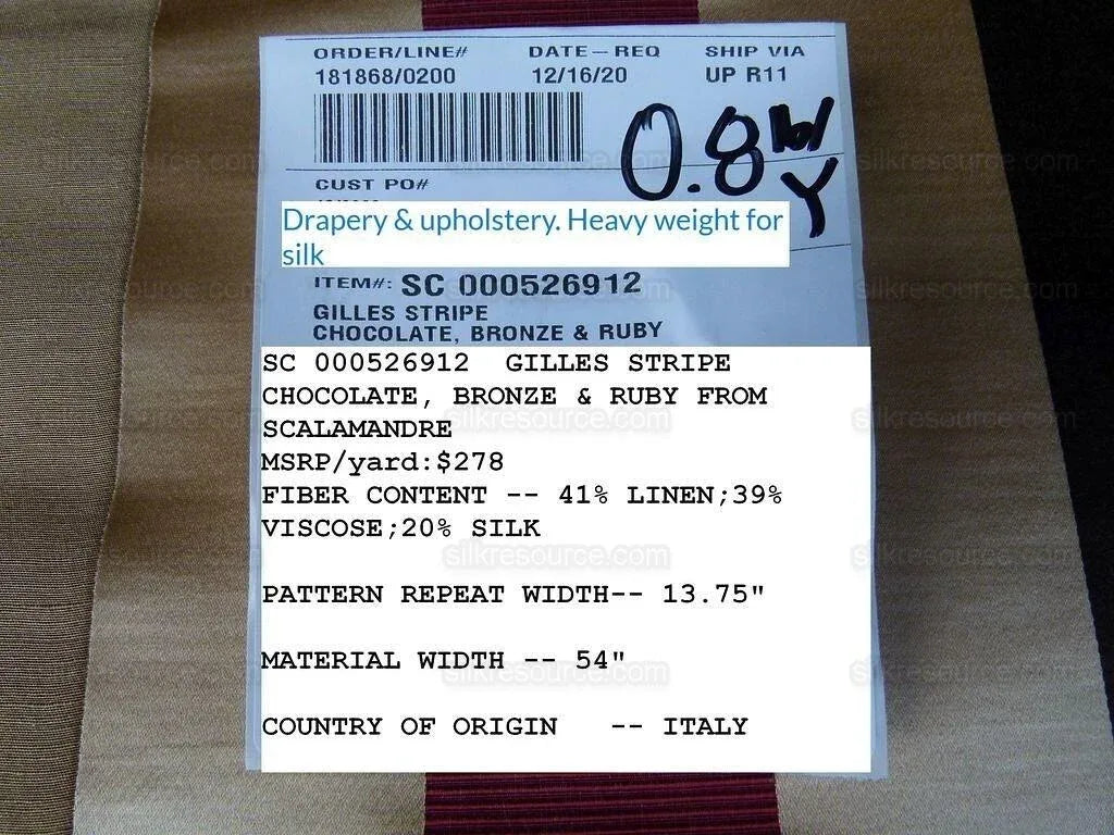 Scalamandre Gilles Stripe Chocolate Bronze Ruby Brown Red Gold Silk Linen Jacquard Heavy Stripe MSRP278/y