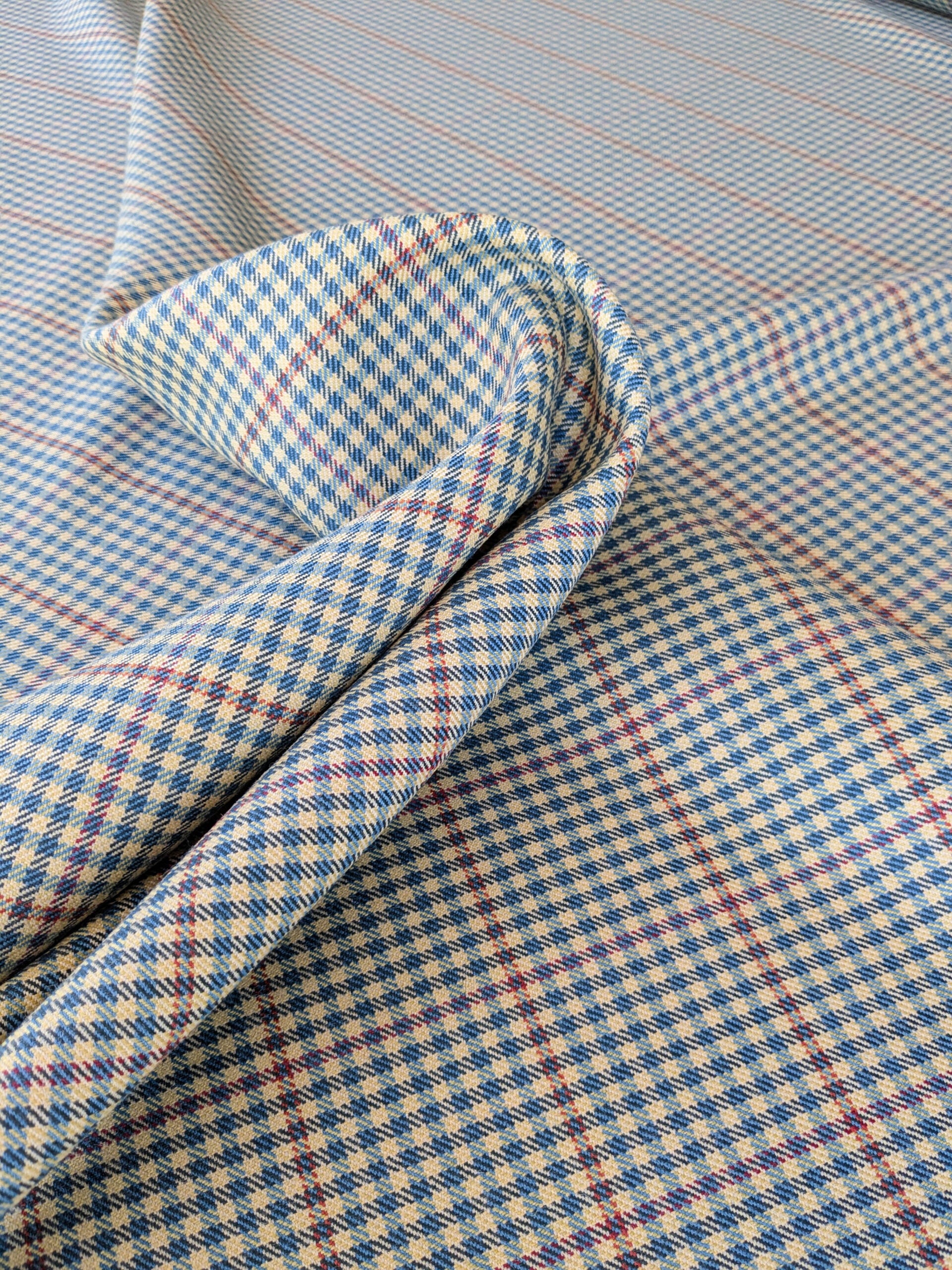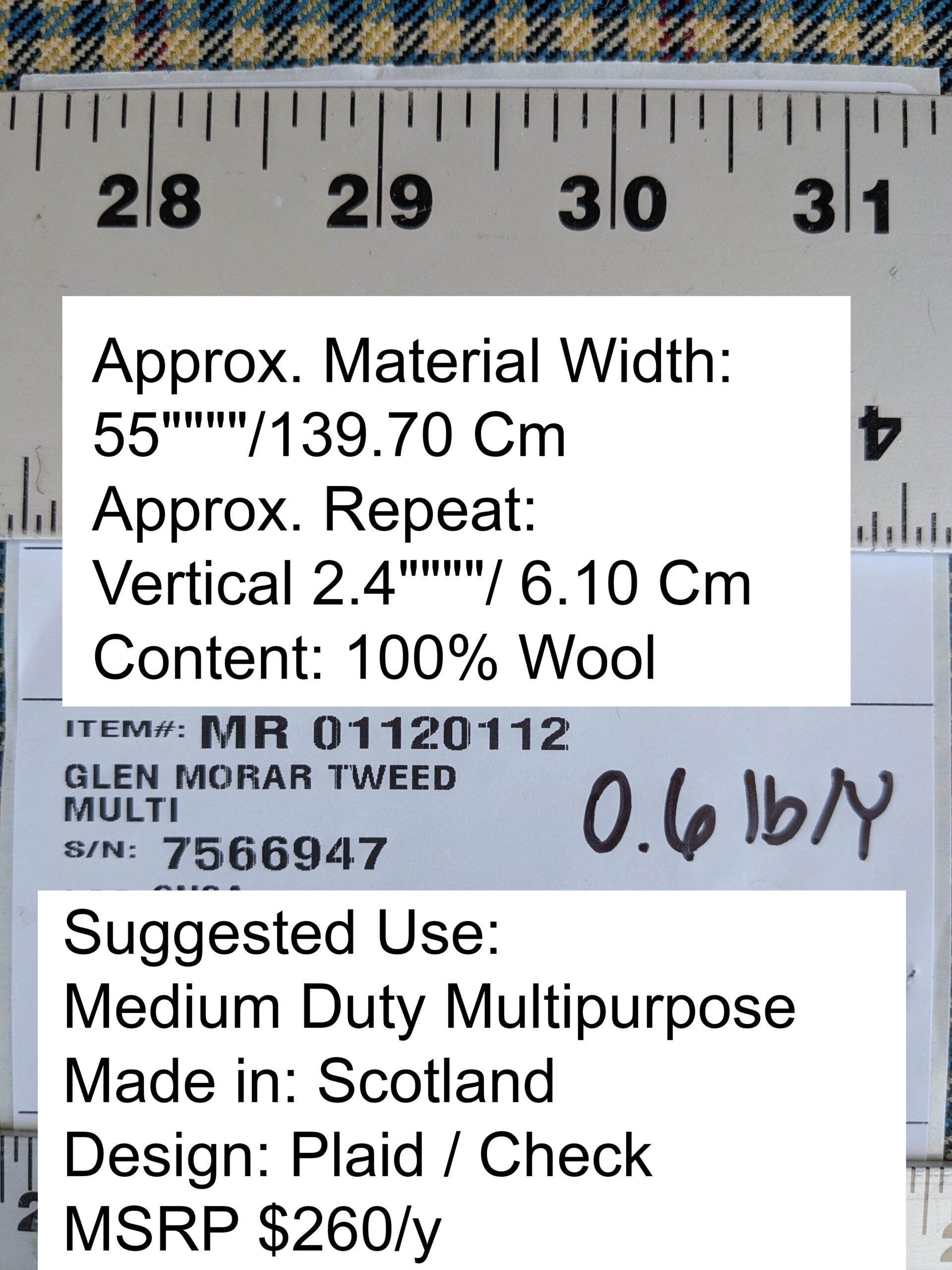 Scalamandre Glen Morar Tweed Scotland Multi Wool Plaid Check Blue Beige Red Small Scale MSRP USD260/y