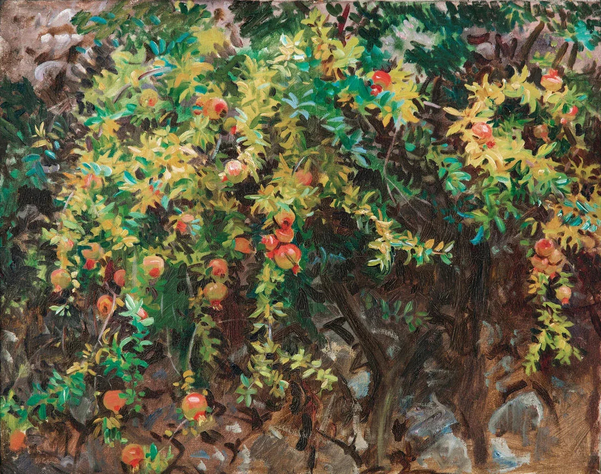 John Singer Sargent, an American infatuated with Spain, captured the Spanish sun filtered through the pomegranate bush. The lace-like quality of Granada also reminds us of the white laces in many of his portraits.