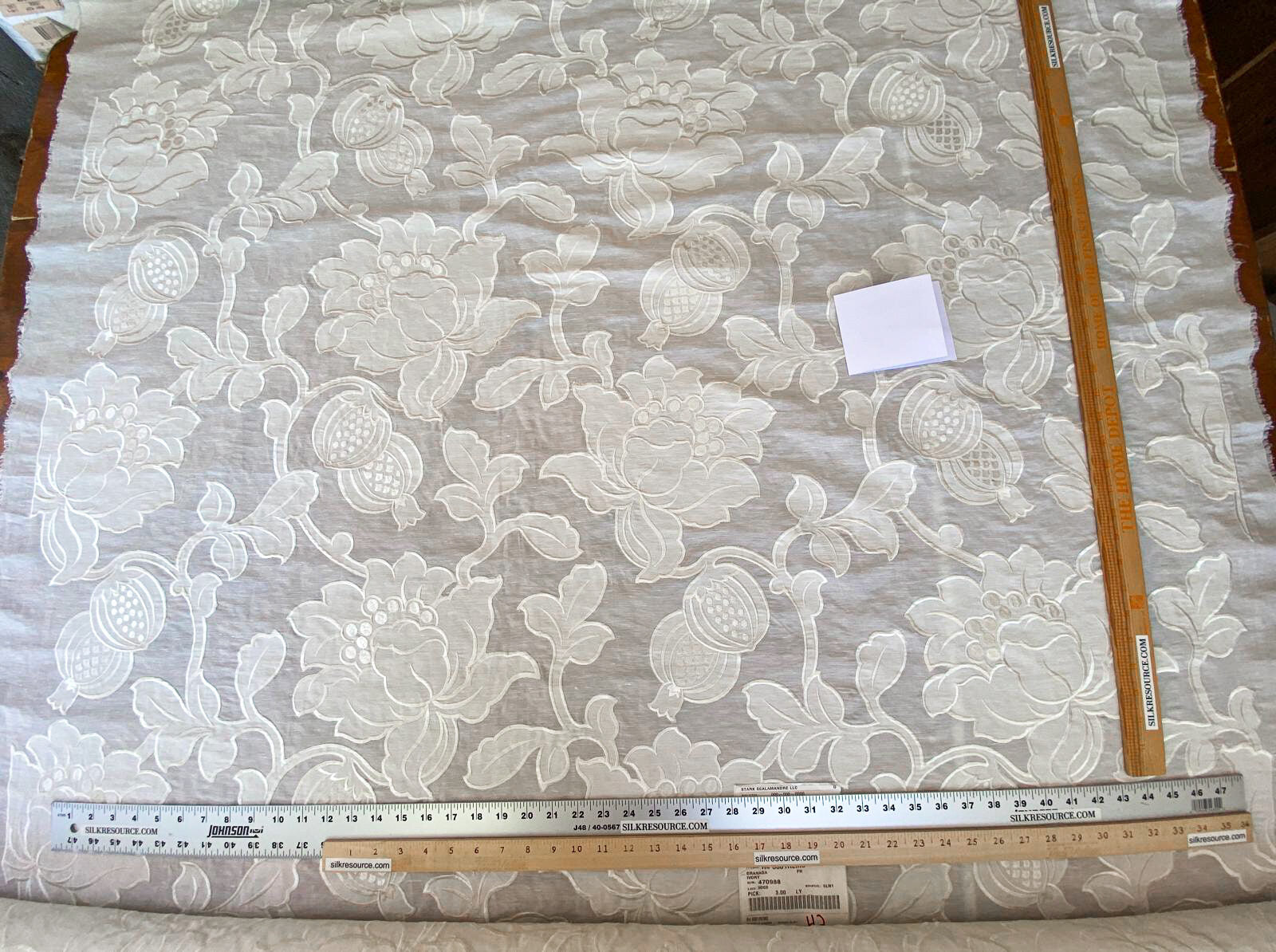 Scalamandre Granada Ivory White Peony Pomegranate Embroidery Linen MSRP USD286/Y