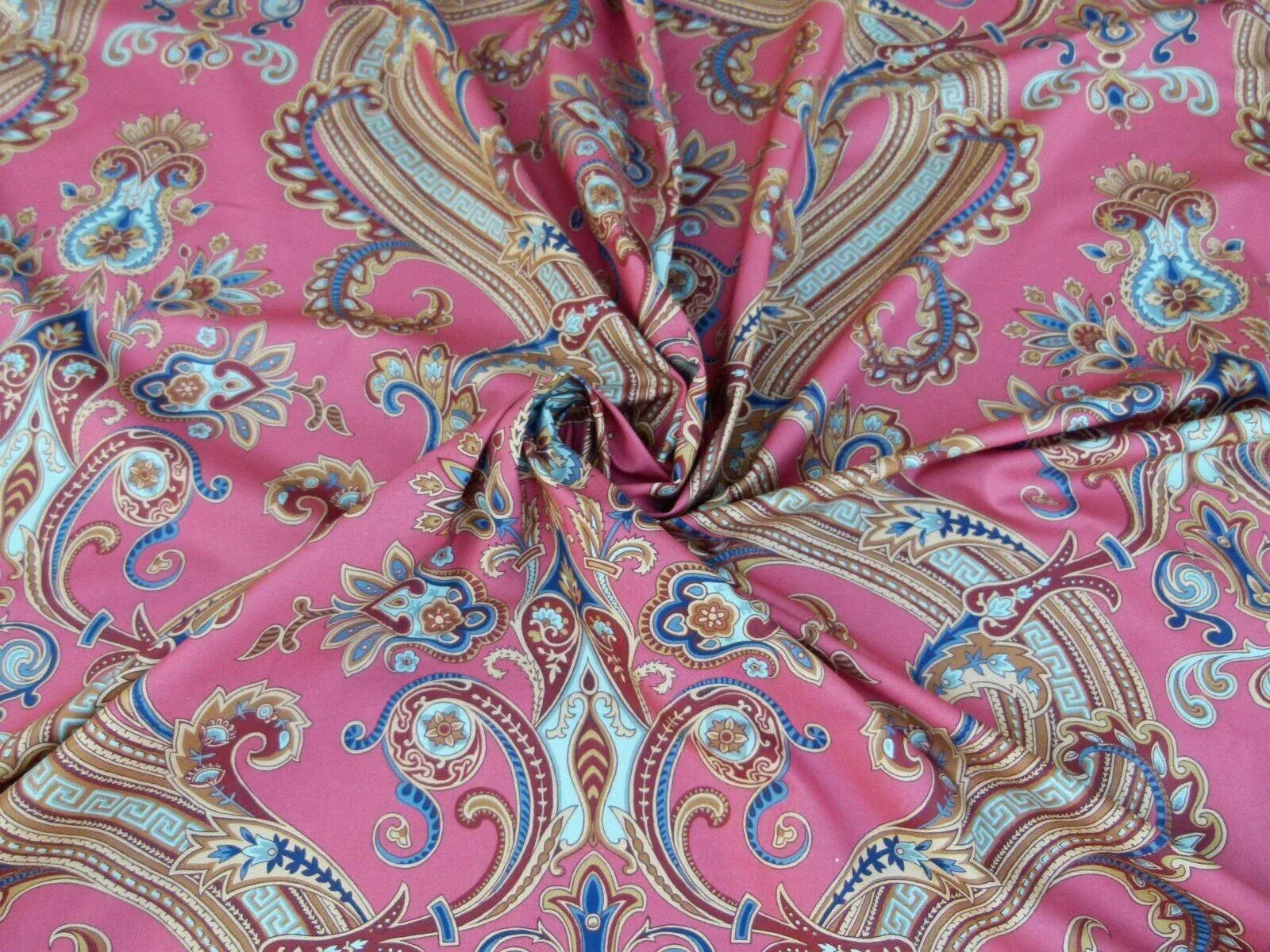 By yard Scalamandre Hudson Multi On Coral Pink Red Paisley Printed Cotton Sateen Belle Jardin Collection Fr France MSRP USD 216/y