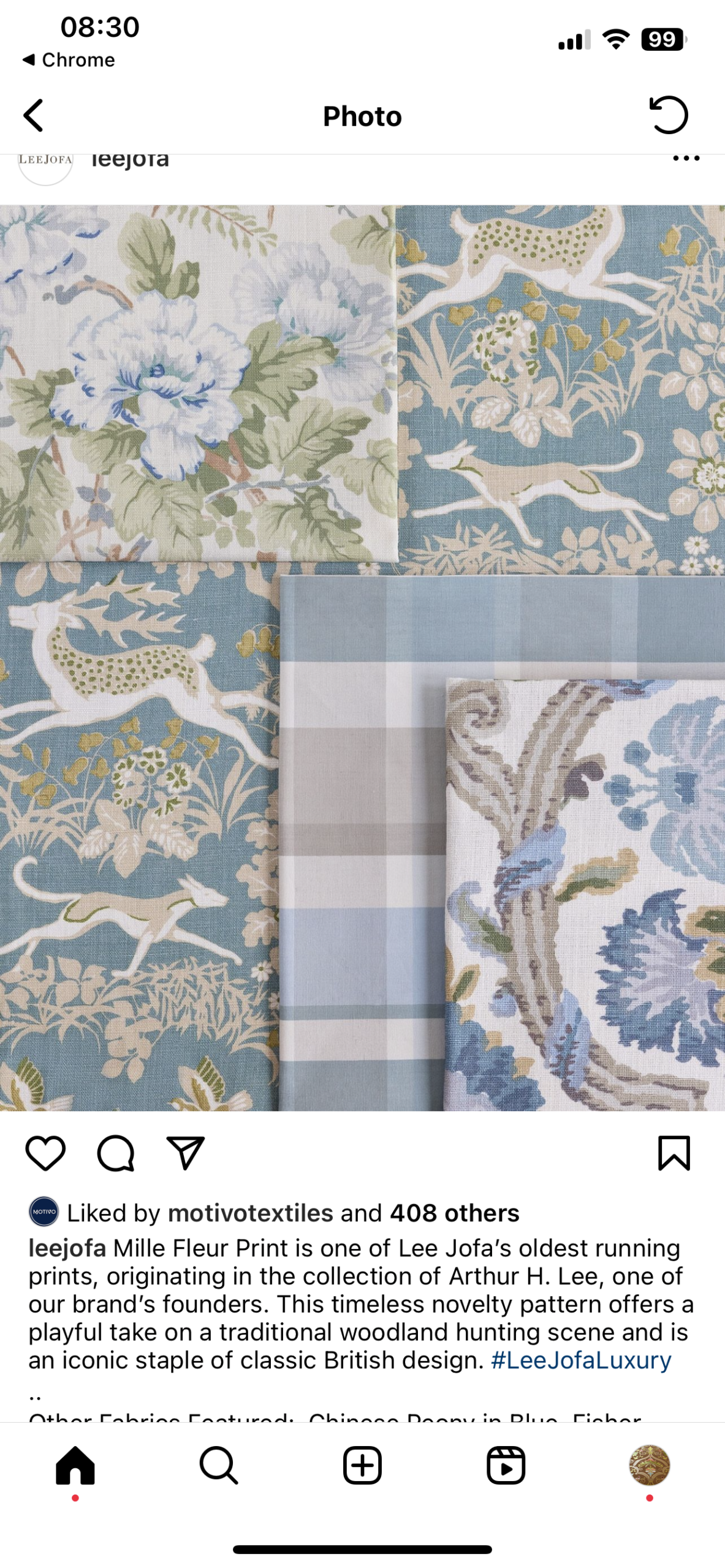 Into the Woods is pure fun. Woodland animals and hunting is a classic theme. Scalamandre rendered the pattern into a free flow of motion similar to Art Nouveau. Deer, hare (or wild rabbit), horse among lively flowers, vines and trees. Suitable for both drapery & upholstery.