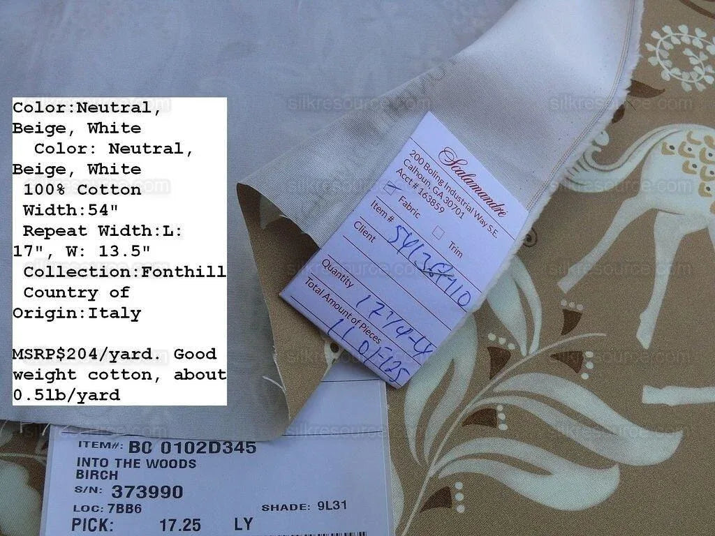 By yard Scalamandre Into The Woods Birch Deer Rabbit Hare Horse MSRP USD 204/Y