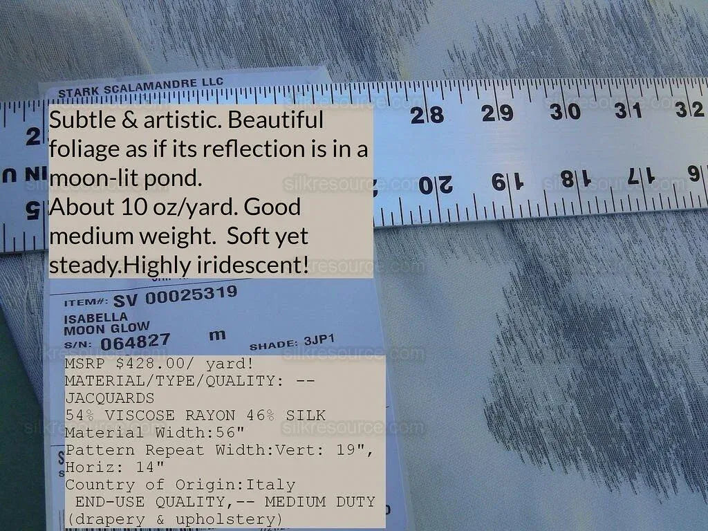 Scalamandre Isabella Moon Glow Foliage Silk Lampas MSRP USD 428/Y