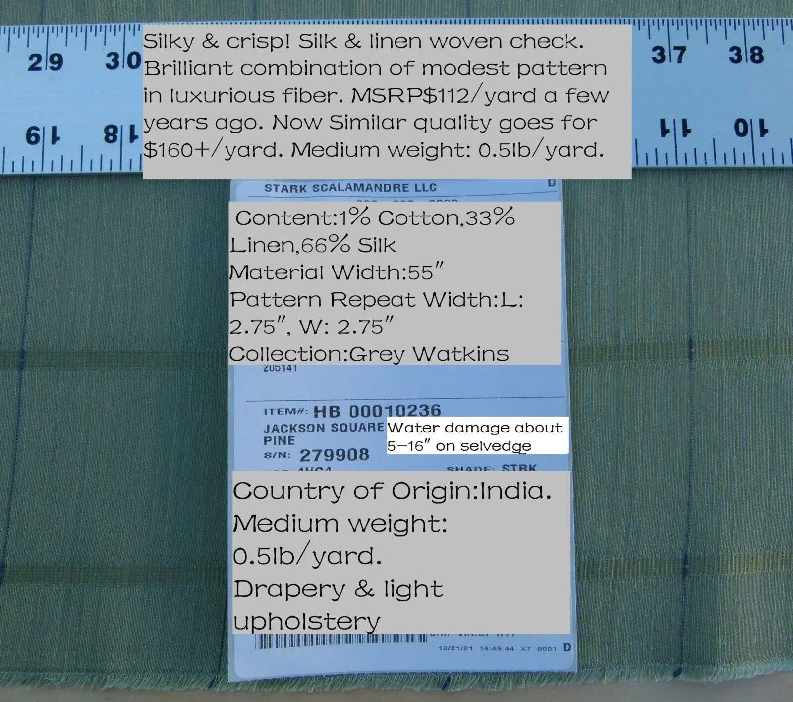 Scalamandre Jackson Square Pine Green Watkins Silk Linen Plaid MSRP USD 112/Y 41"wide