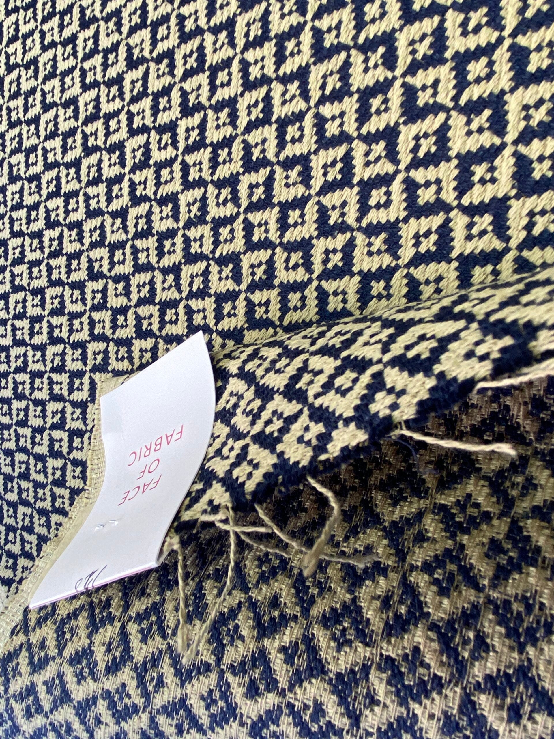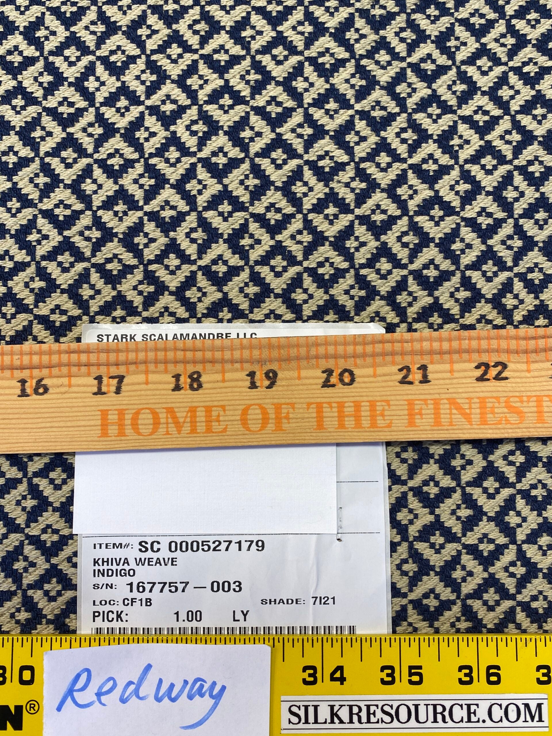 Scalamandre Khiva Weave Indigo Blue White Small Scale Geometric Diamond 100% Cotton MSRP USD180/yd