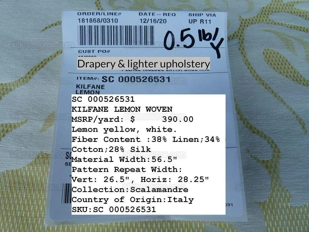 Fiber, repeat, width, weight, country of origin, retail price/yard: