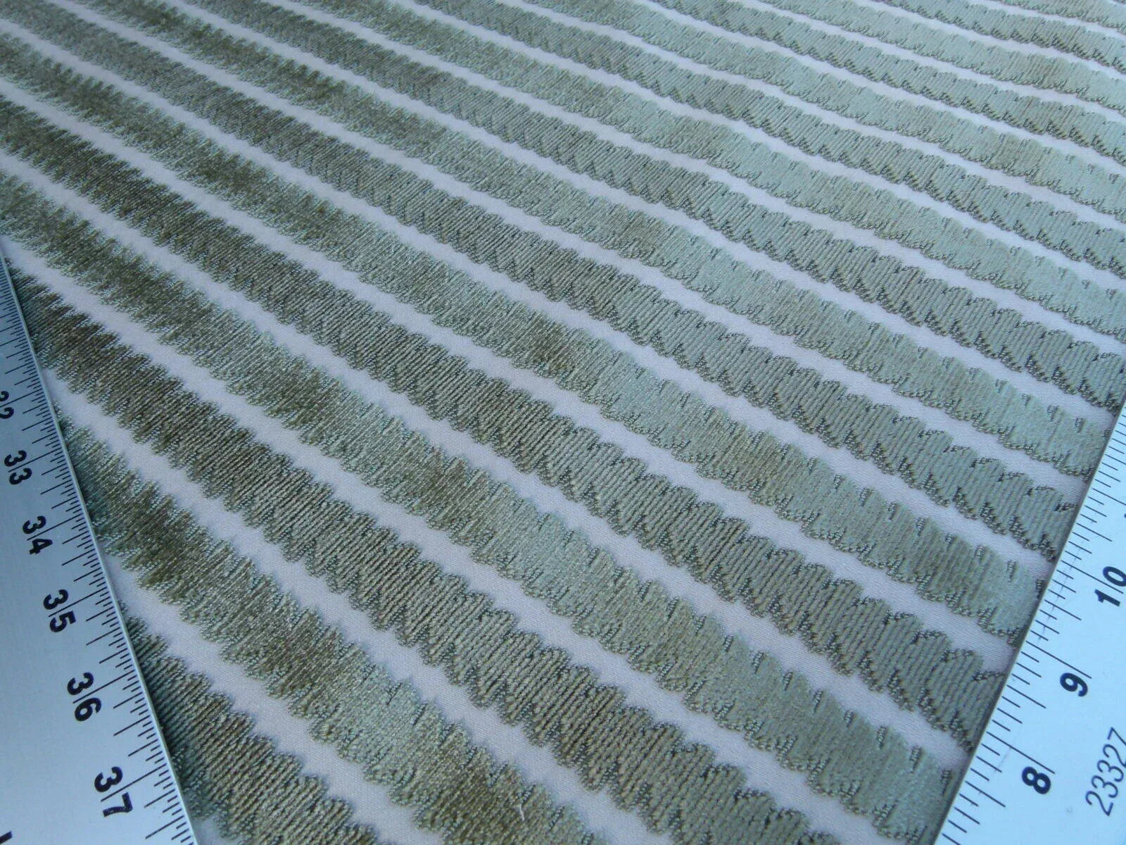 Scalamandre La Foltiere Shadow Verdure Green Silver Pewter Cut Velvet Stripe Old World Weavers MSRP USD 284