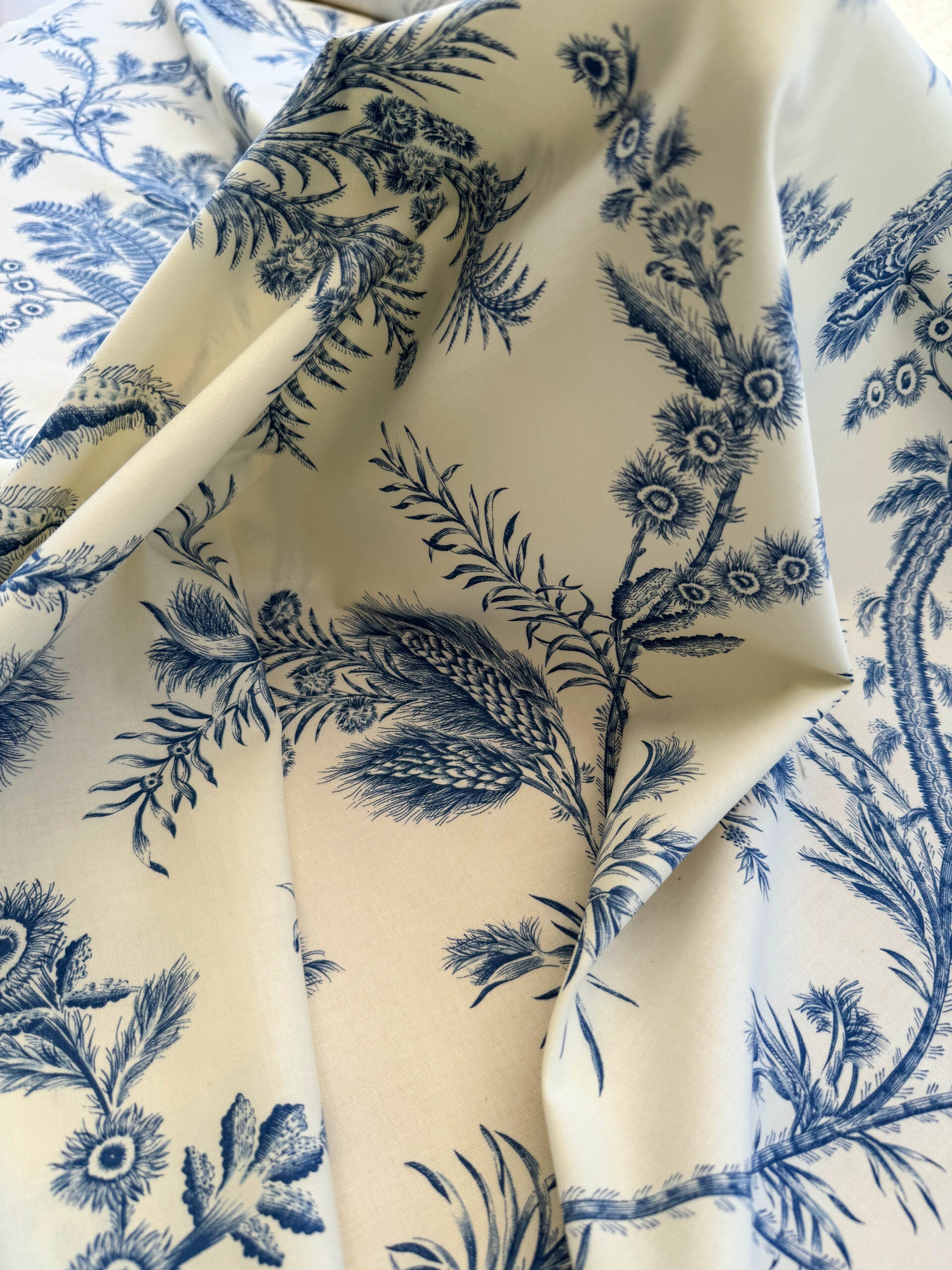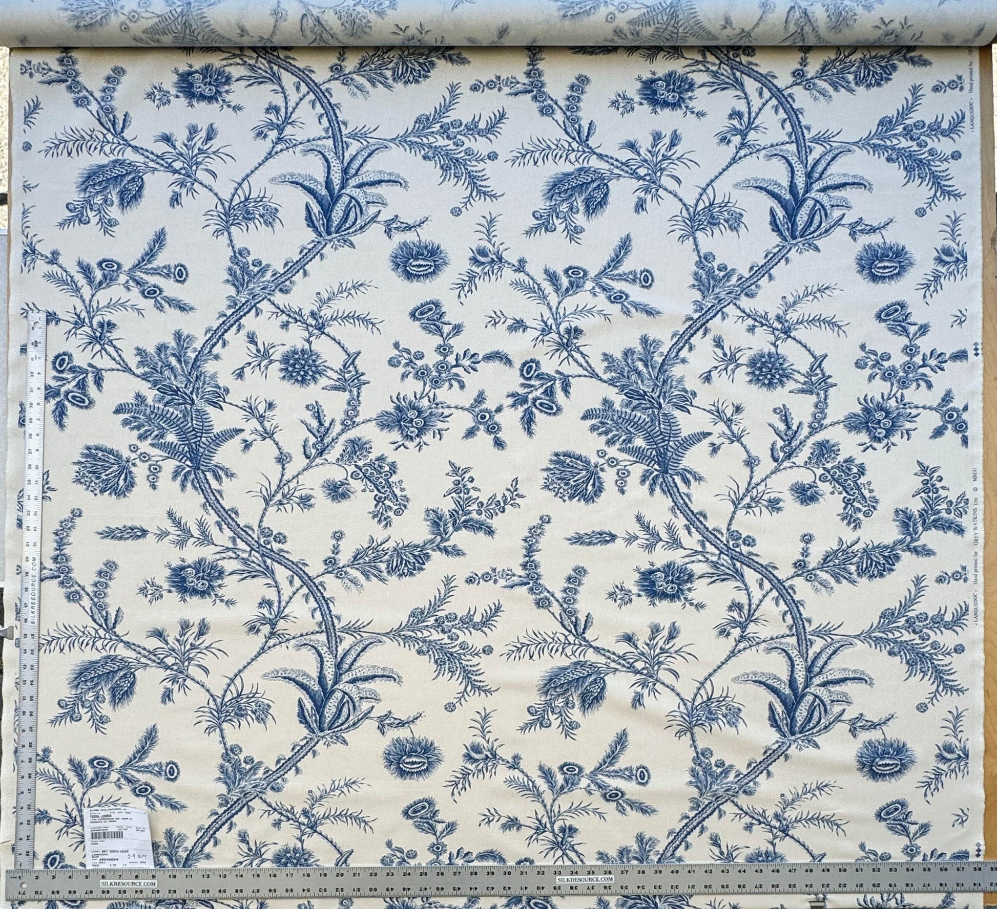 by yard Scalamandre Grey Watkins Languedoc Blue White Botanic Fern and Thistle Southern France Toile Circa 1790 MSRP USD 364/y