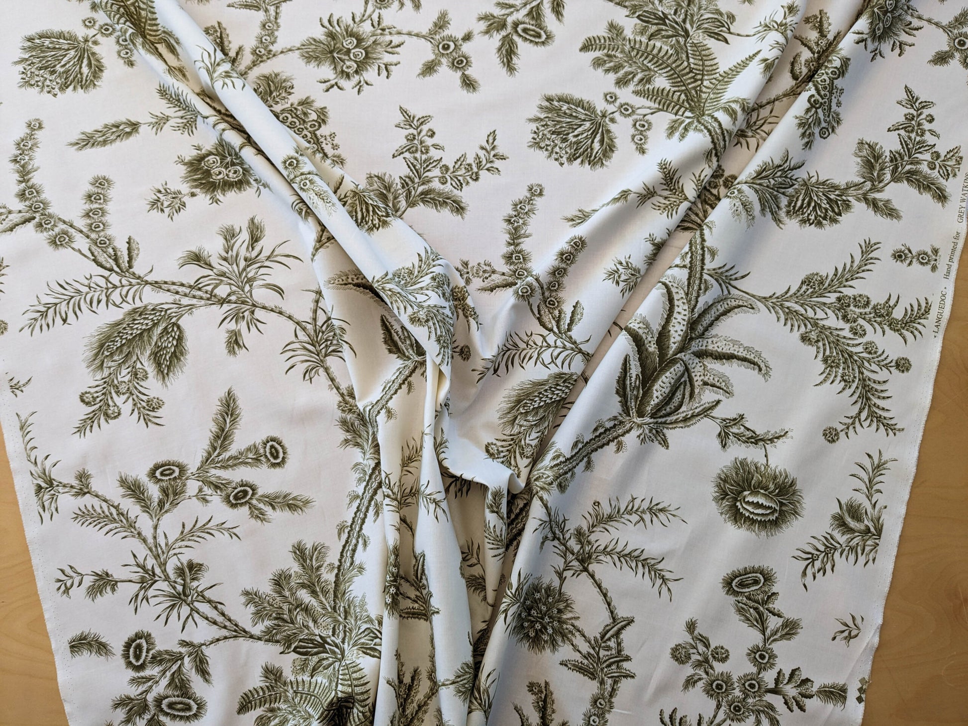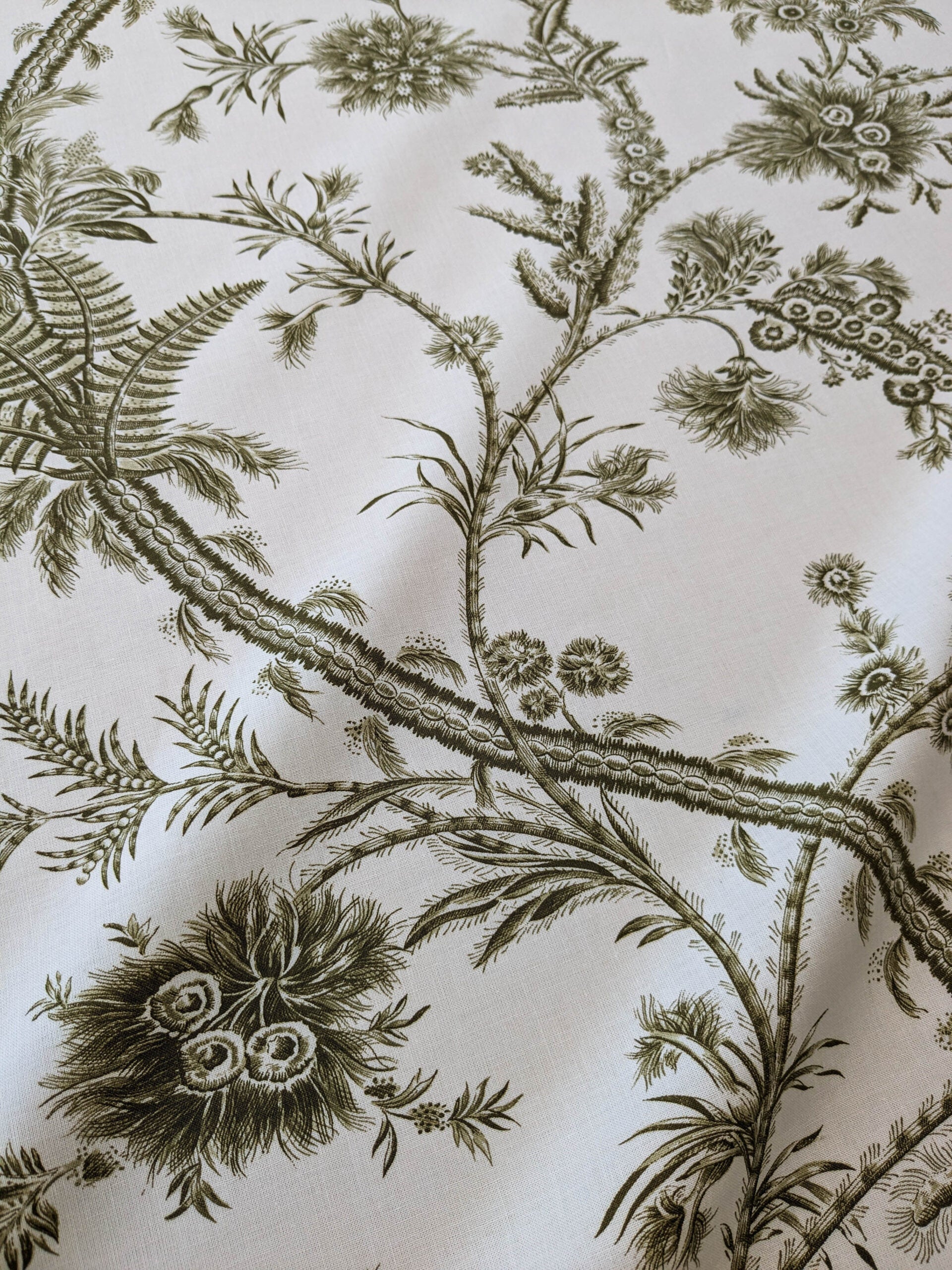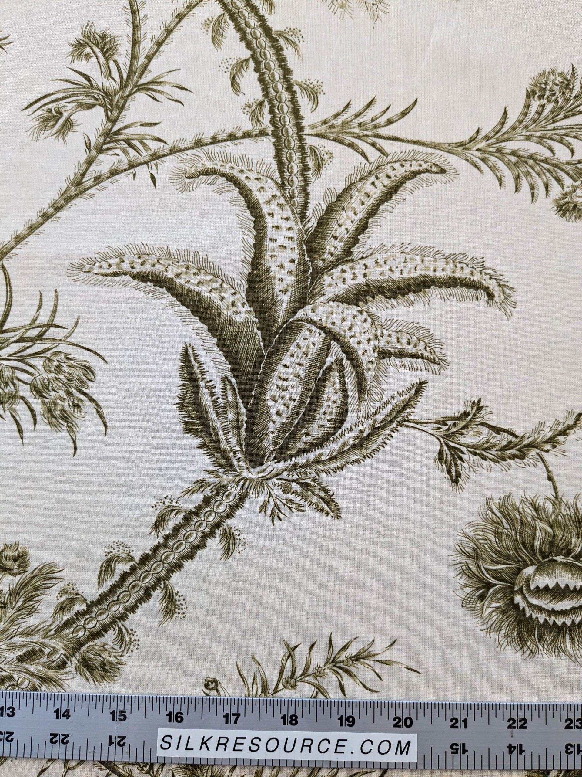 by yard Scalamandre Grey Watkins Languedoc Khaki Beige Green Botanic Fern and Thistle Southern France Toile Circa 1790 MSRP USD 364/y