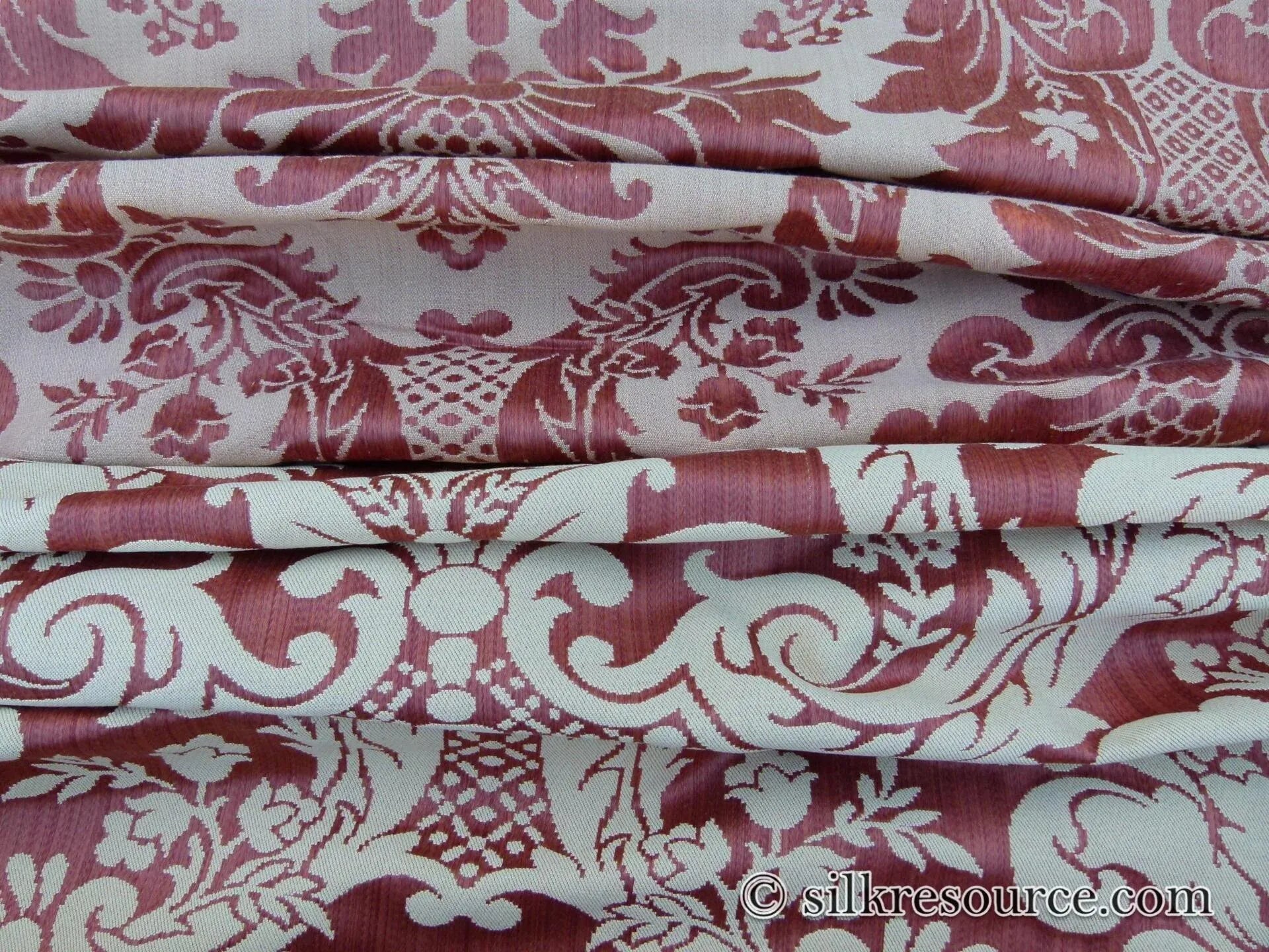 Scalamandre Layton Castle Peach Strie Cotton Damask Renaissance Classic Red MSRP USD 454/Y