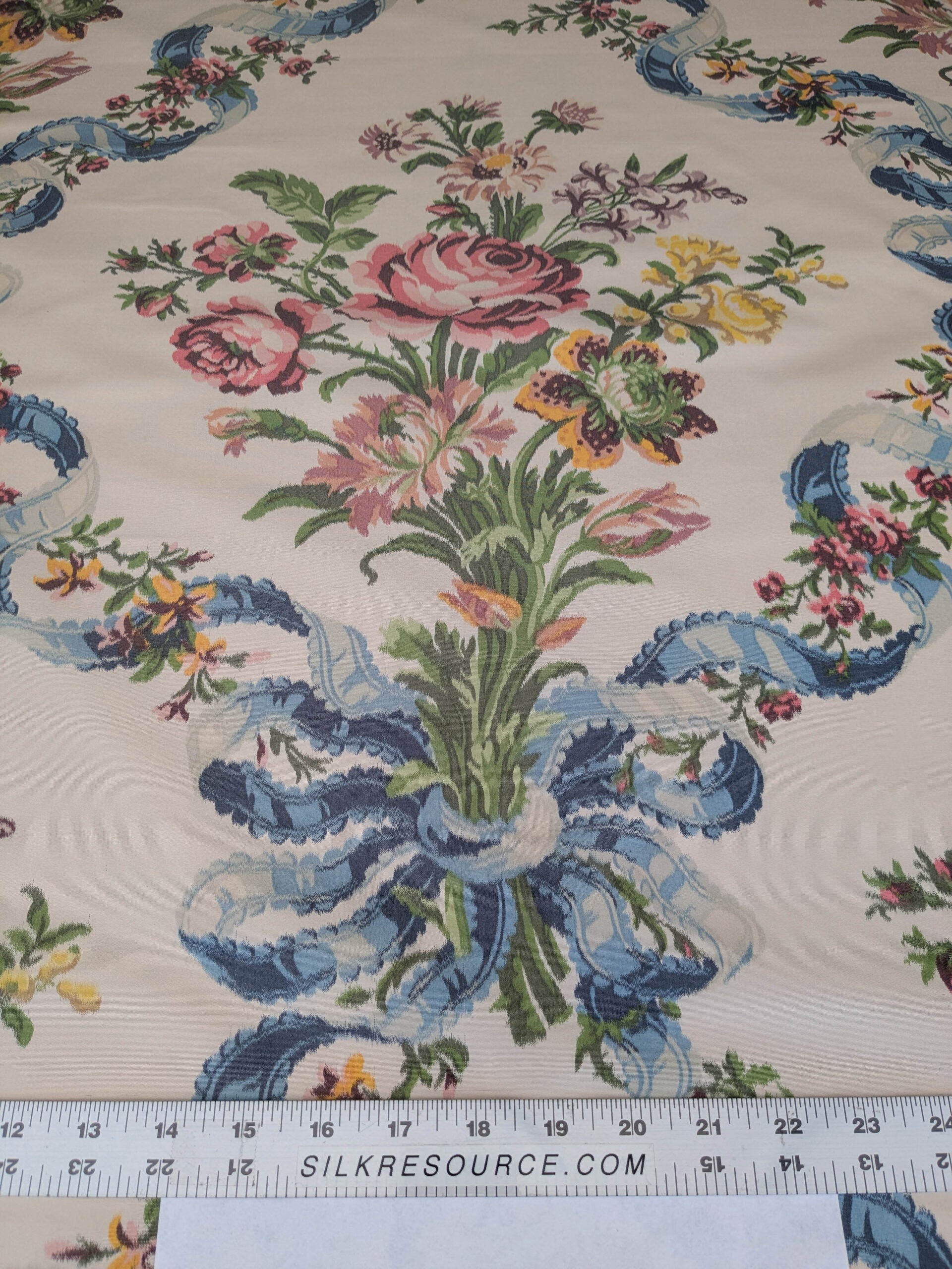 Scalamandre Tassinari & Chatel Adelaide Silk Warp Print Font Creme Beige Cream Blue Pink Floral Diamond Chateau of Versailles MSRP USD 2800+y