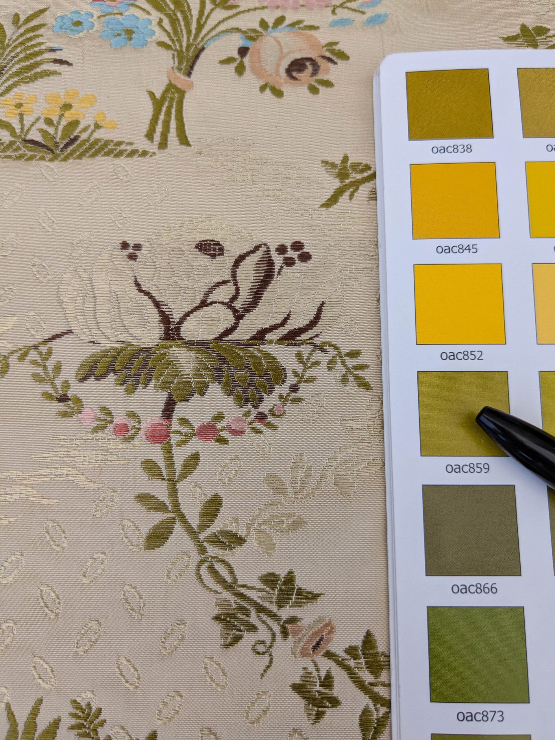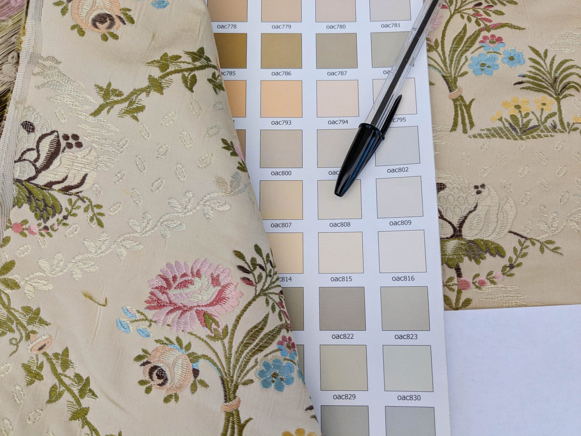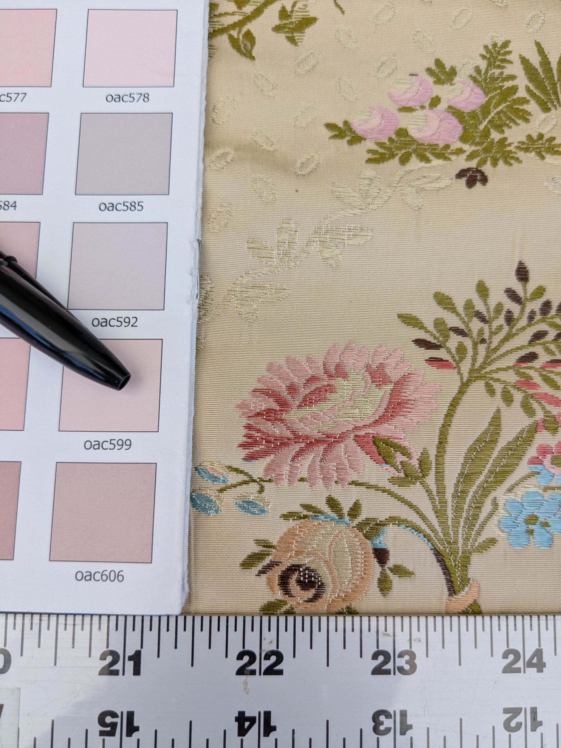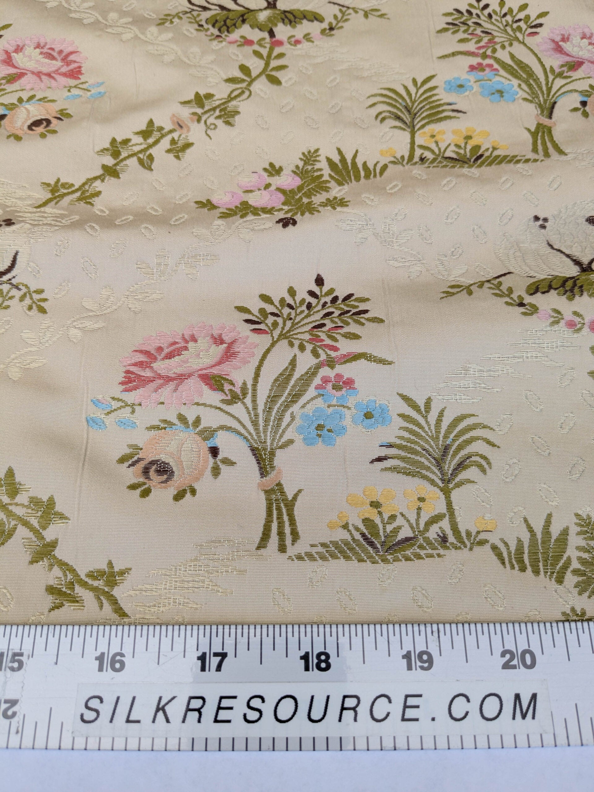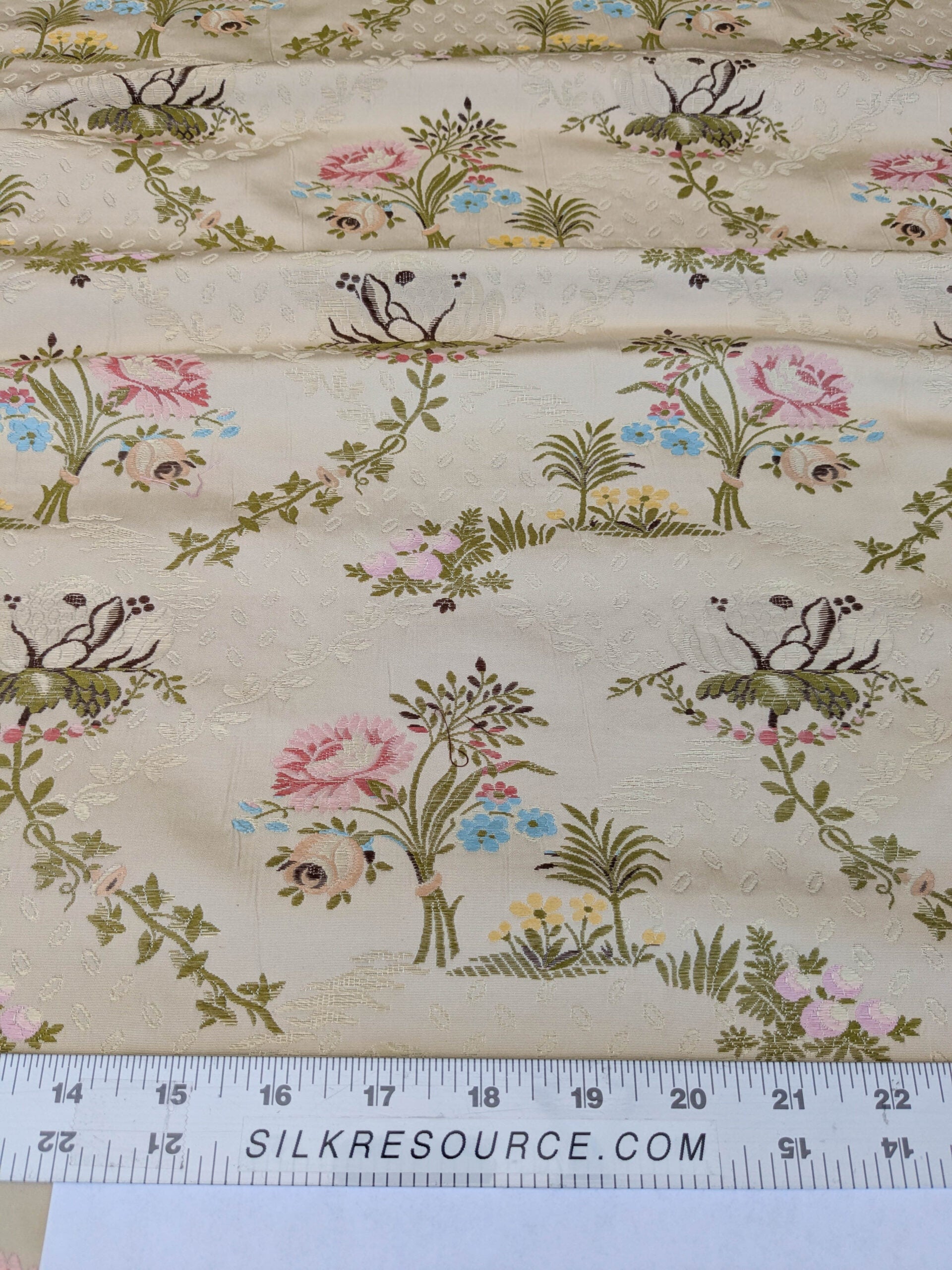 Scalamandre Lelievre Lampas Poussin Beige Green Pink Silk Floral Weave MSRP USD 1472/y