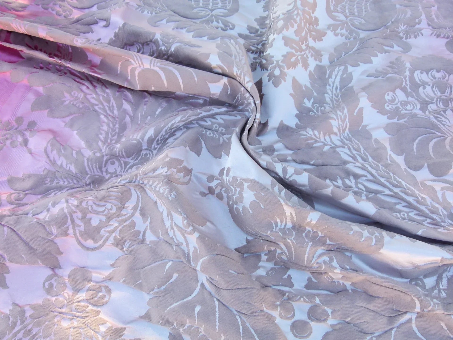 A flamboyant design in the style of Louis XIV, Carrousel is a damask with relief in a spectacular repeat. The design is two repeats mirrored across the width in 6 sophisticated colorways. A damask with a lovely full handle woven with a silk warp with a cotton weft, a testament to our expertise in silk weaving.