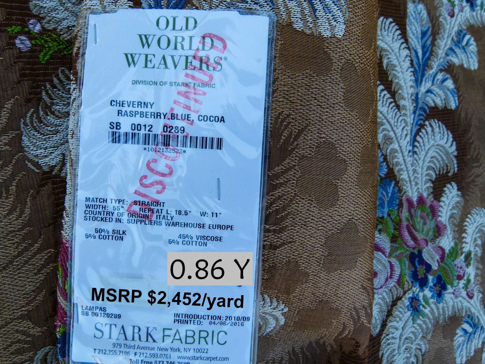 Scalamandre Length 0.86Y Cheverny Raspberry Blue..