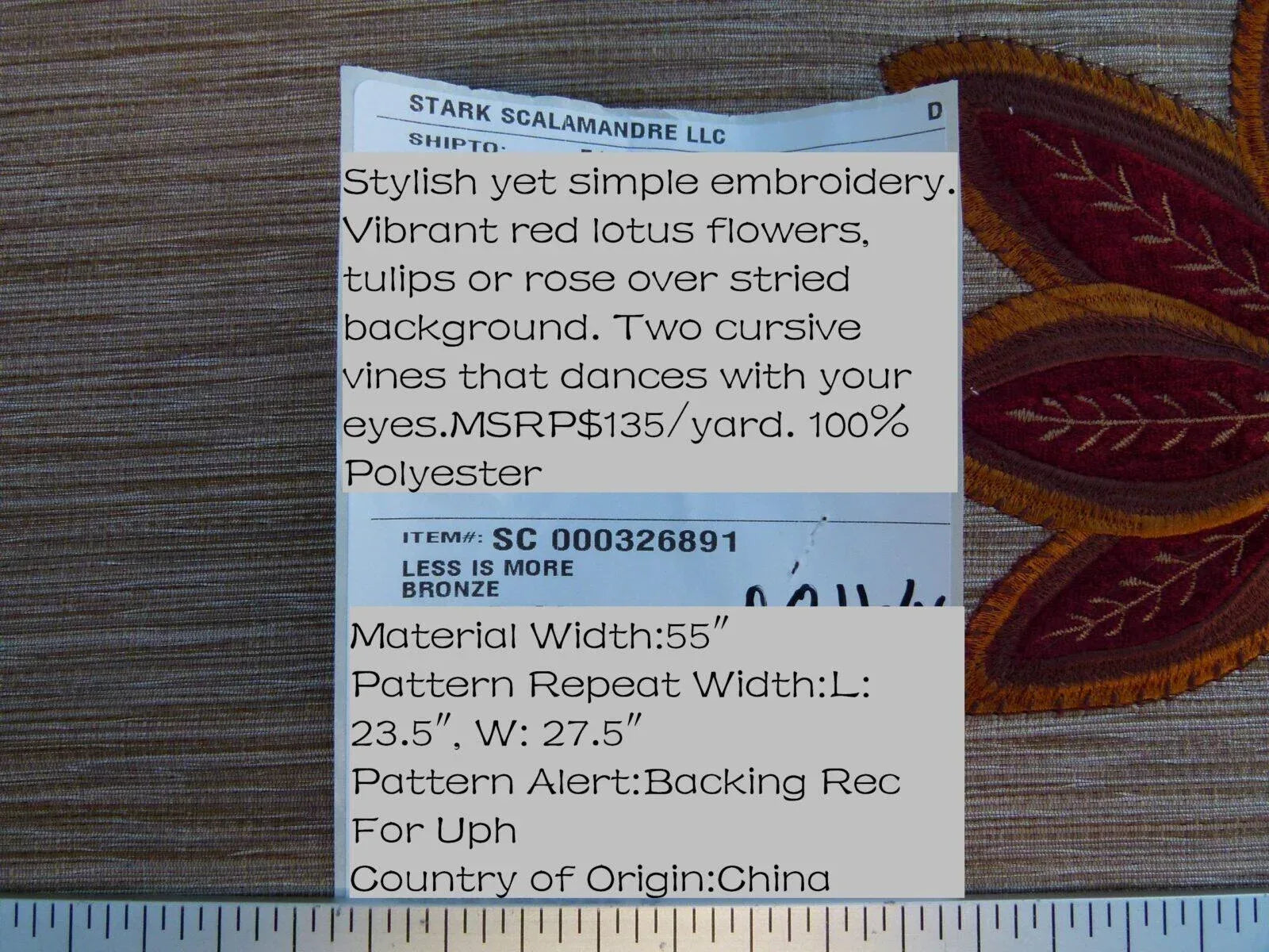 Scalamandre Less Is More Bronze Embroidery Vine Flower Red Gold Green MSRP USD 135/y