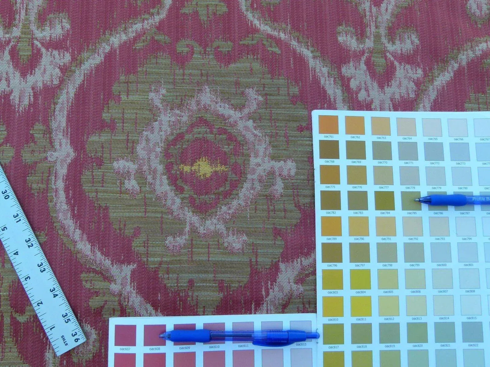 Scalamandre Libretto Brick Red Bronze Medallion Lampas MSRP USD 258/Y Lotus Medallion Lampas