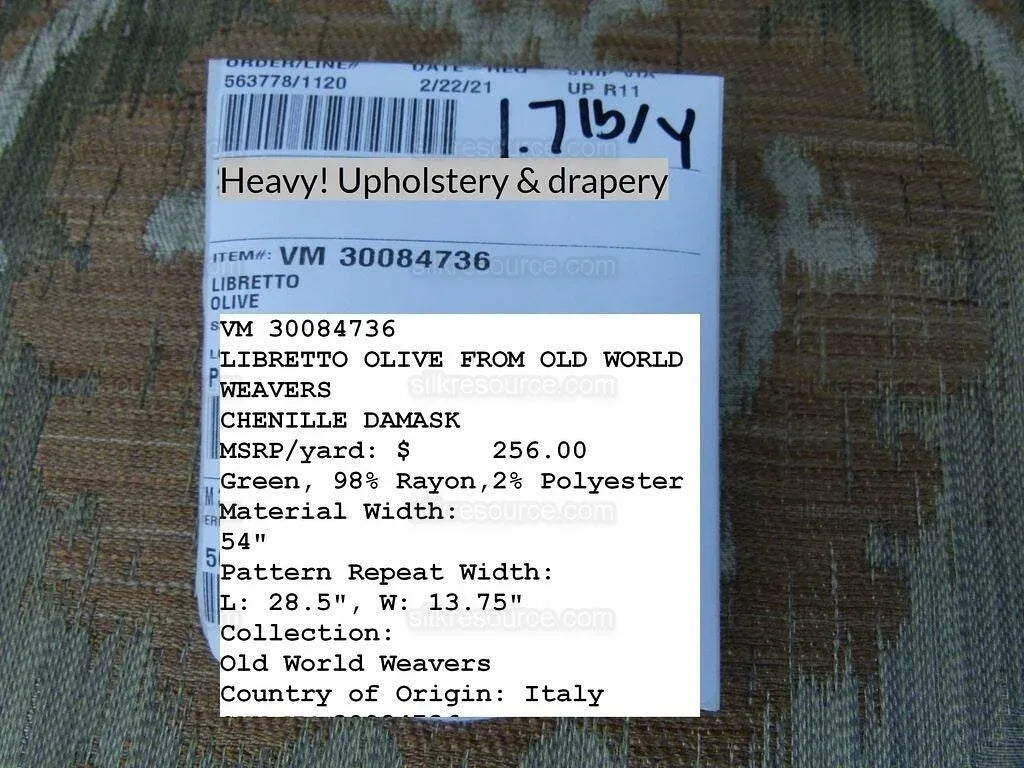 MSRP USD258 a few years ago. Similar brocade from Italy now retails for $350+/yard.
