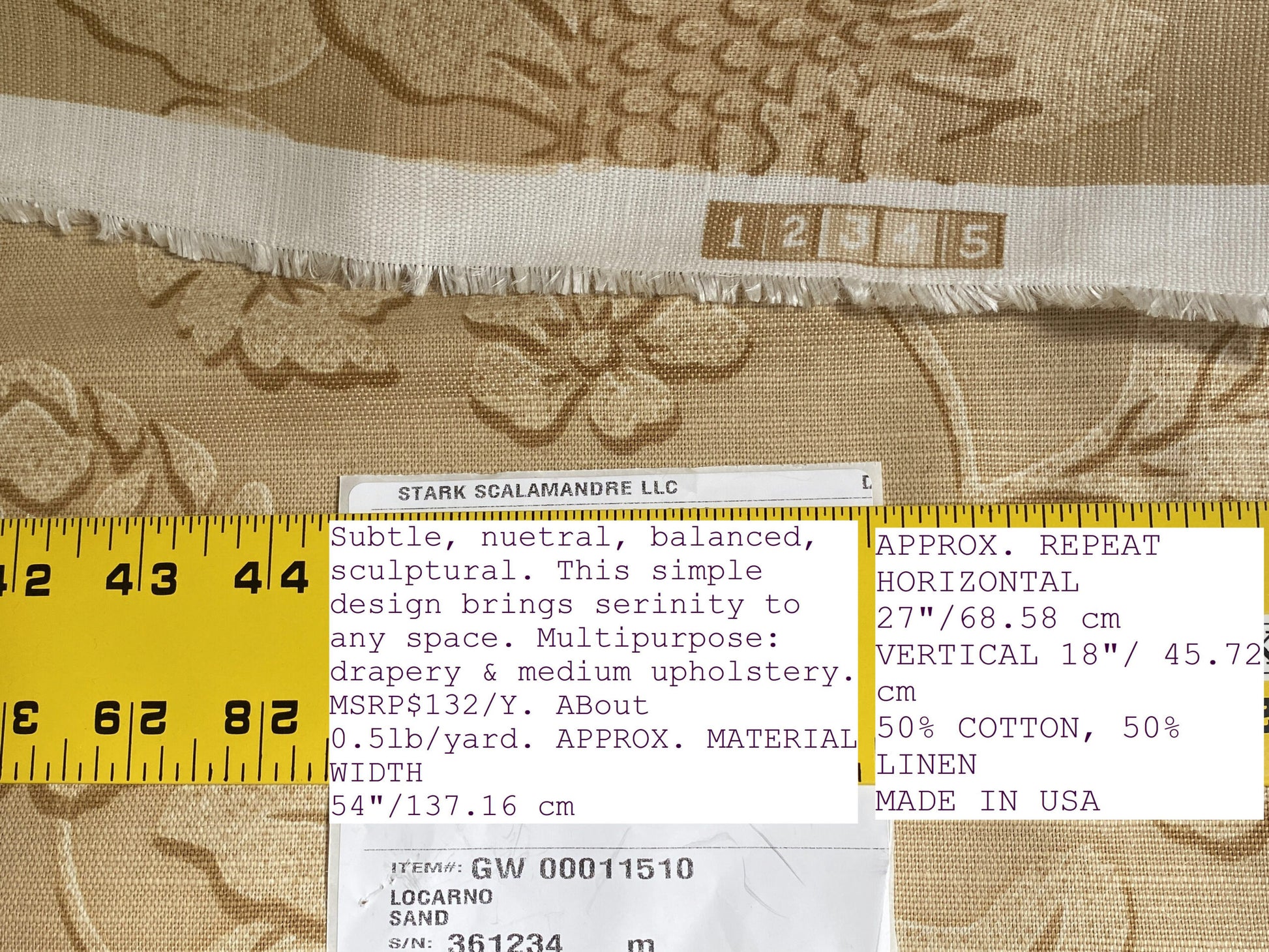 by yard Scalamandre Locarno Sand Beige Cotton Linen Print Neutral Flora MSRP USD 132/Y