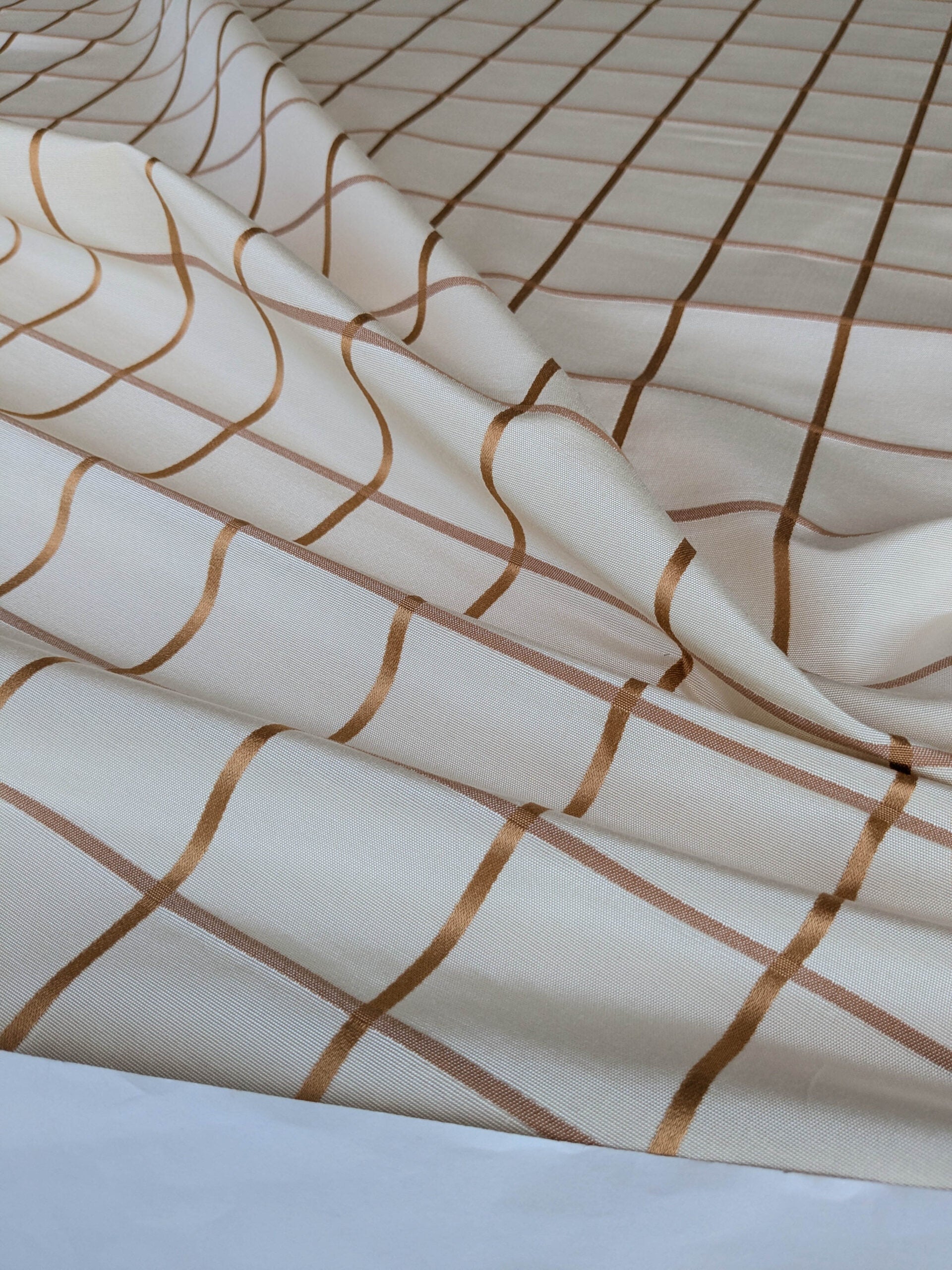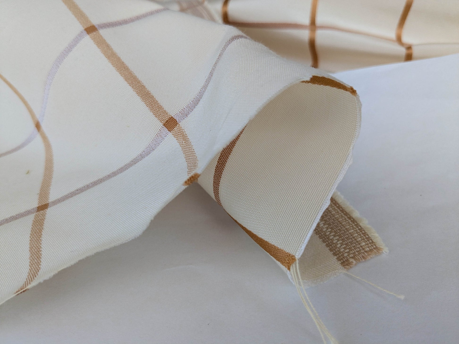 Scalamandre Louis Check Ochre on Creme Brown Beige Cotton Viscose Cotton Windowpane Plaid Check MSRP USD 176/y
