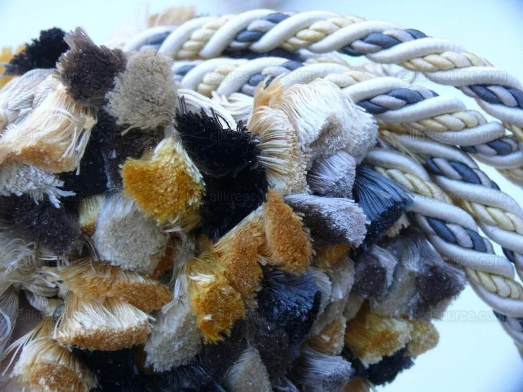 Scalamandre Lyon 100% Silk Double Tie Back Charcoal Yellow