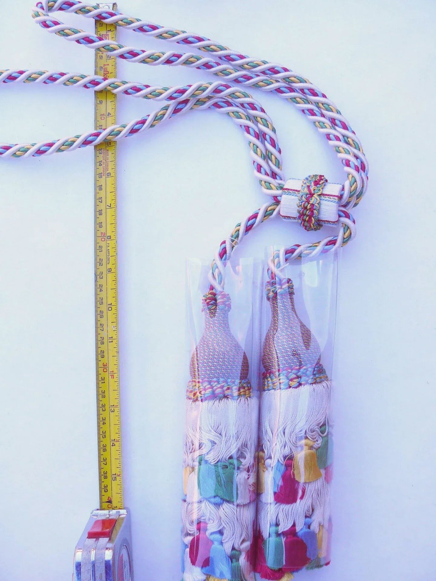 Scalamandre Lyon 100% Silk Tieback White Red Green Yellow, Blue
