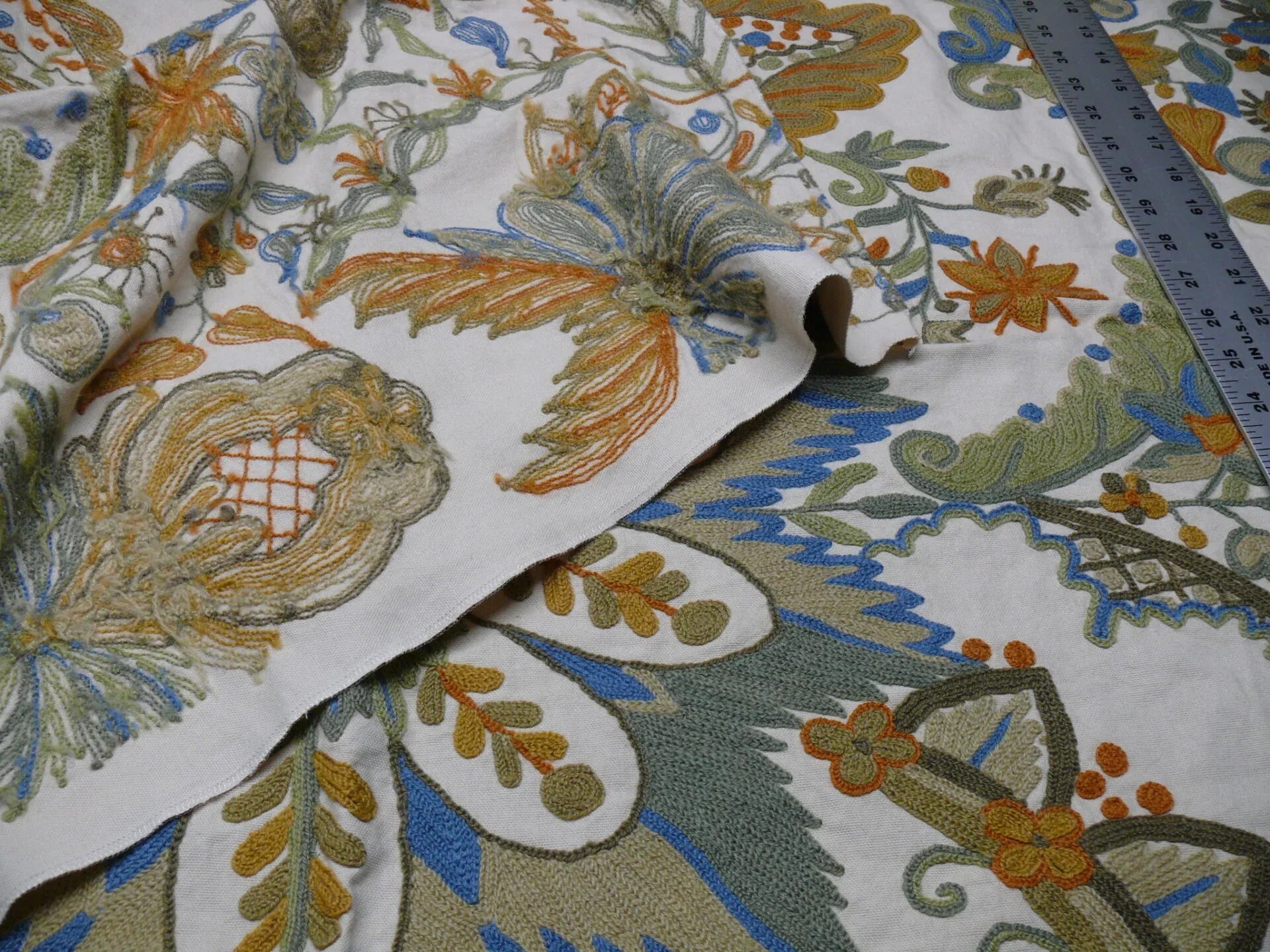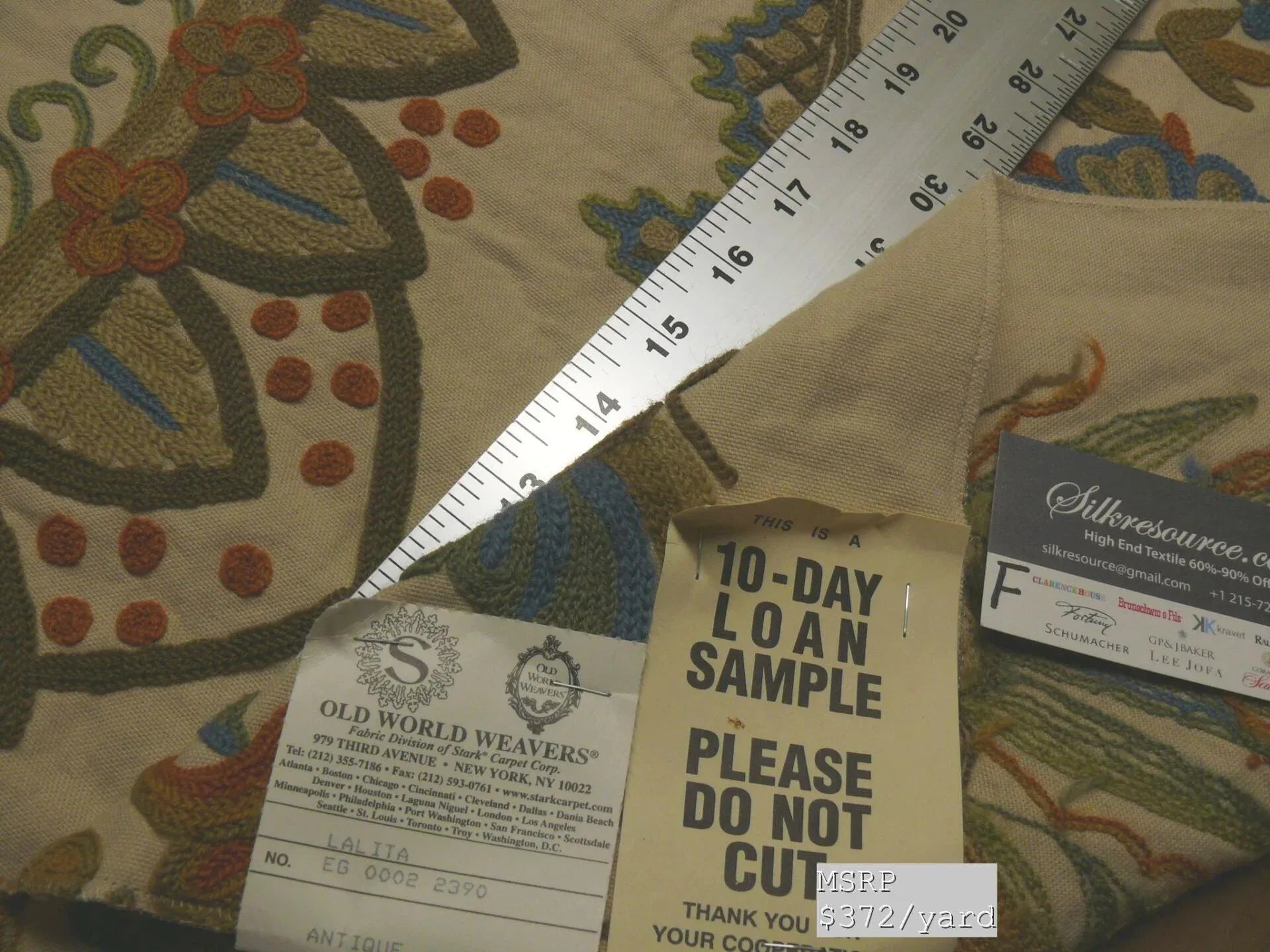 Designer: Scalamandre/Old World Weavers Very good weight & tightly woven. About 1lb per yard. For drapery & upholstery. Photos cannot capture its beauty... . Our price is below wholesale and even production cost! Superb quality. The pattern's different colors really pop out from various angles. Color, repeat, fiber content, applications & retail price: please see the printout in photo. Total available: see beginning of listing.