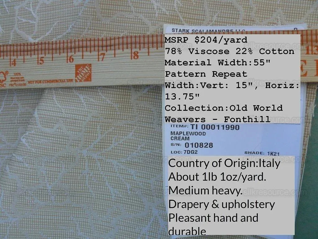 Scalamandre Fonthill Maplewood Cream White Damask Foliage Maple Leaves MSRP USD 204/Y