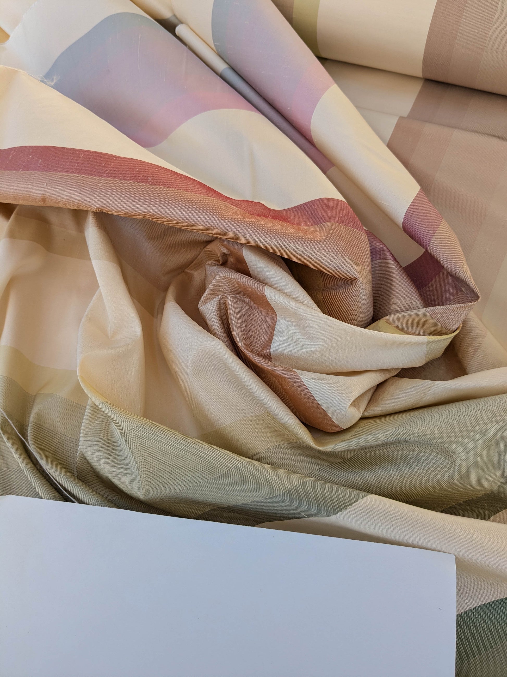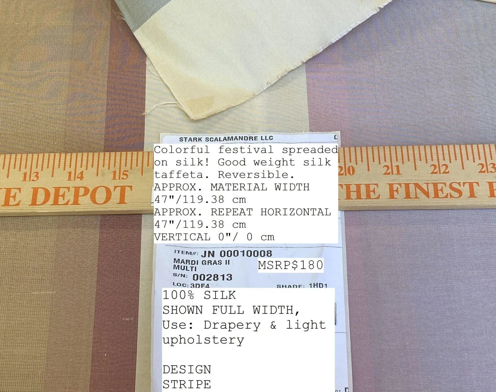 Scalamandre Mardi Gras Ii Multi Rainbow Stripe Silk Taffeta Pink Green Purple Beige Ombre MSRP USD 180/Y