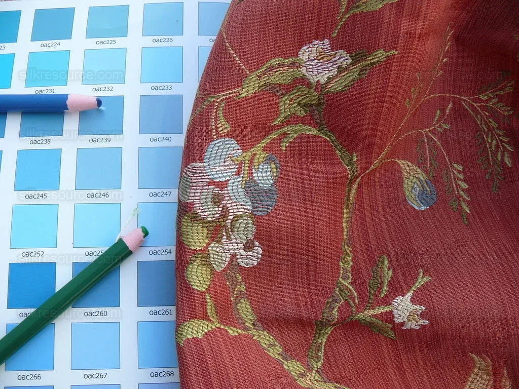 Renaissance Lampas Melograno Pom Fig Rose Tree Of Life On Red #1635
