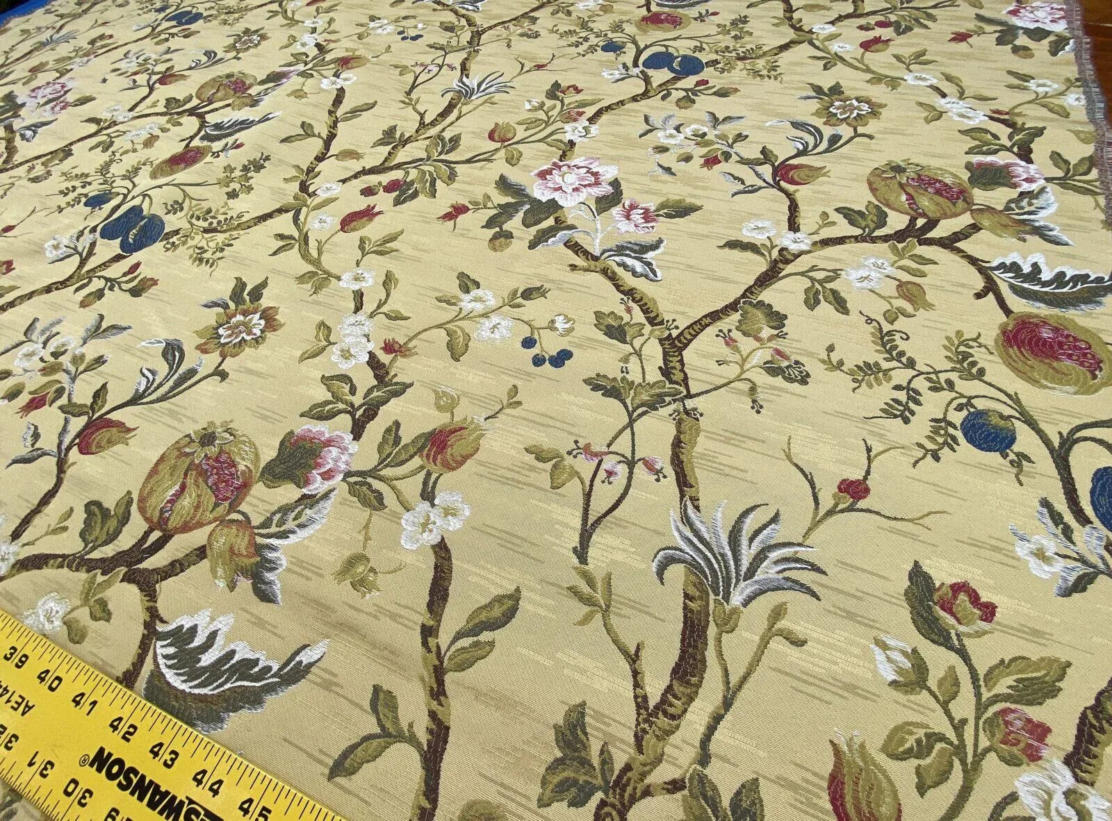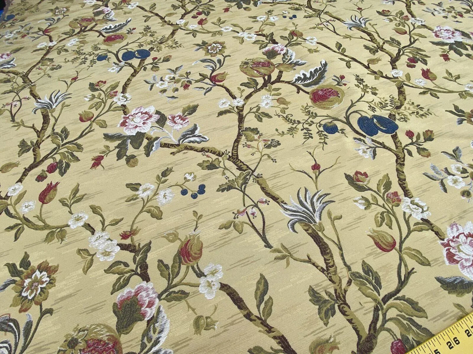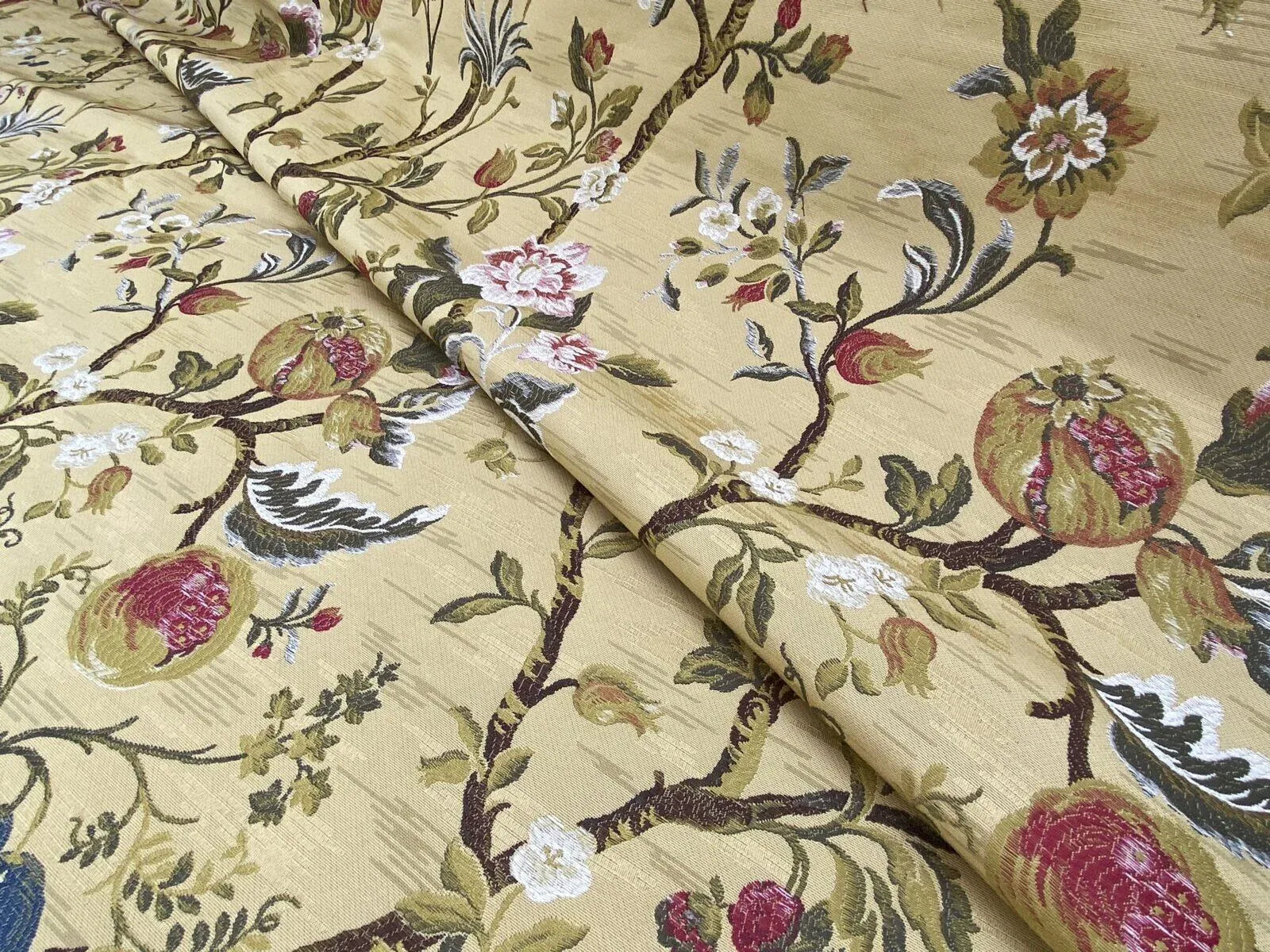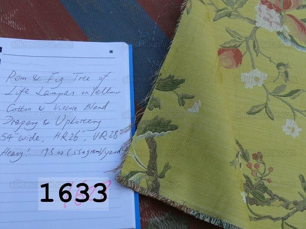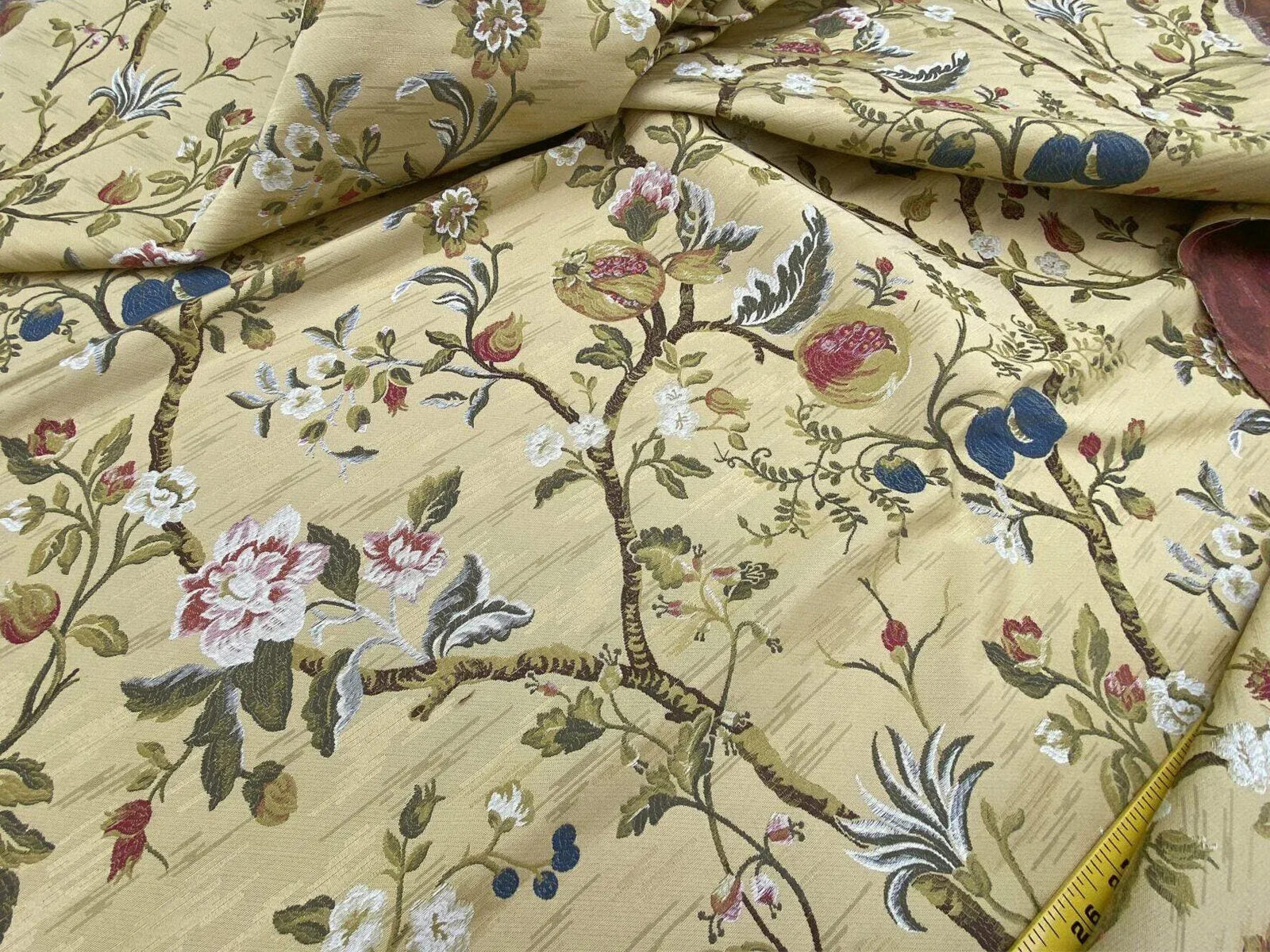 Renaissance Lampas Melograno Pom Fig Rose Tree Of Life On Yellow Gold #1633